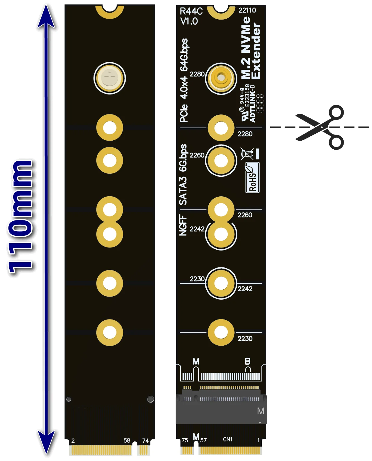 Comprar Tarjeta de prueba personalizada ADT M.2 Mkey NVMe SSD, extensión de unidad de estado sólido, ranura de dedo dorada, tarjeta de protección