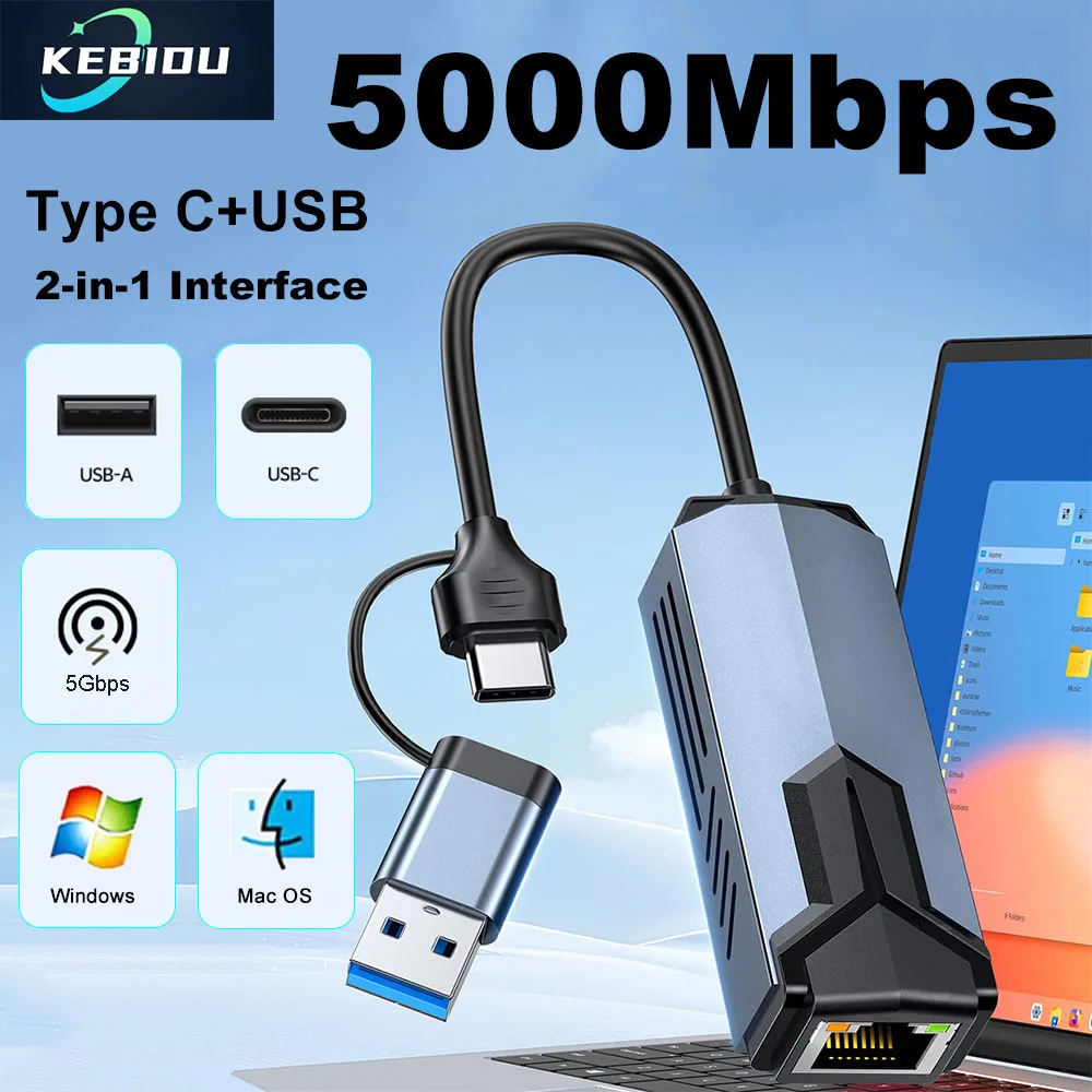 Comprar Tarjeta de red con cable 5G, adaptador USB 3,0 tipo C a RJ45 RTL81527 de 5000Mbps de alta velocidad para NAS MacBook Pro Notebook, tableta de escritorio