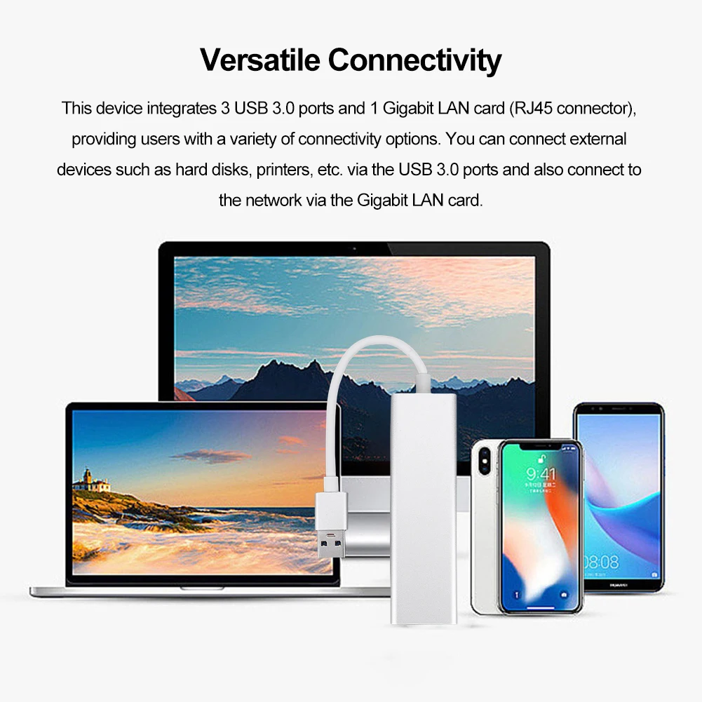Comprar Tarjeta de red con cable USB de 10 100/1000/3,0 Mbps, adaptador Ethernet LAN a Rj45, tarjeta de red Gigabit RJ45 de 3 puertos para ordenador portátil y PC
