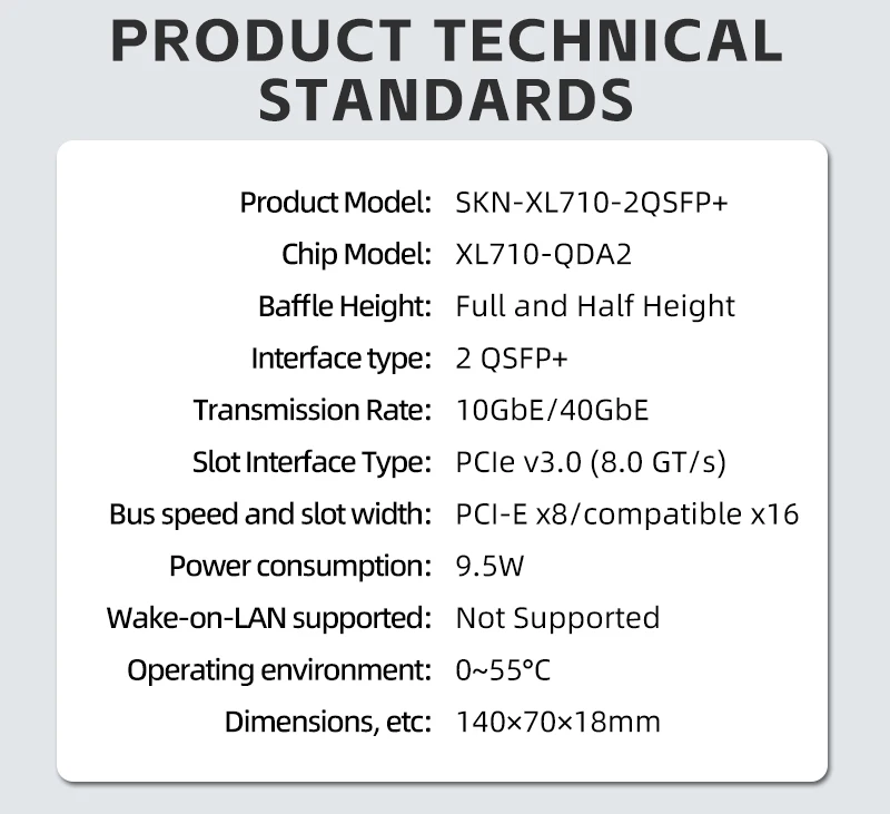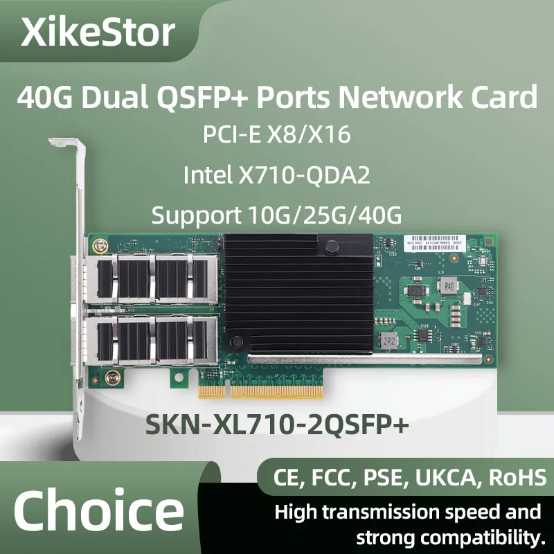 Comprar Tarjeta de red de doble puerto 40G QSFP+ Chip de Control principal Intel PCI-E x8/Compatible x16 PCIe x8 de altura completa, media altura universal