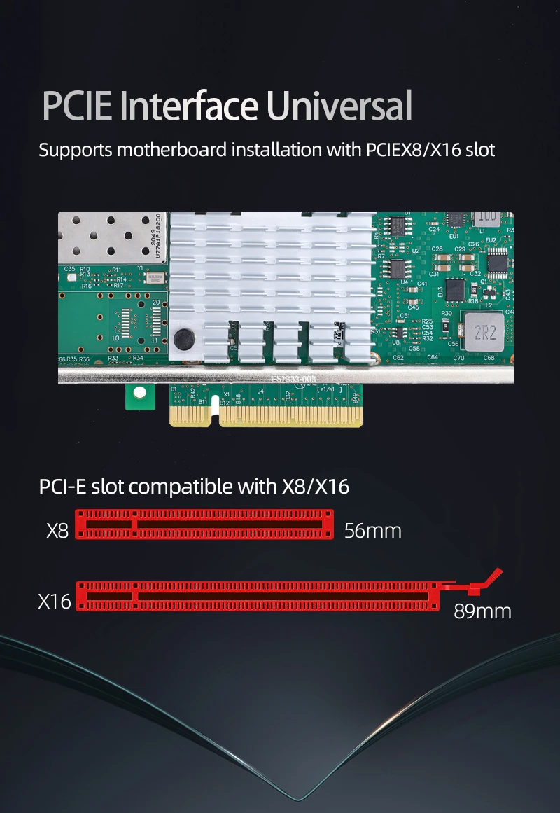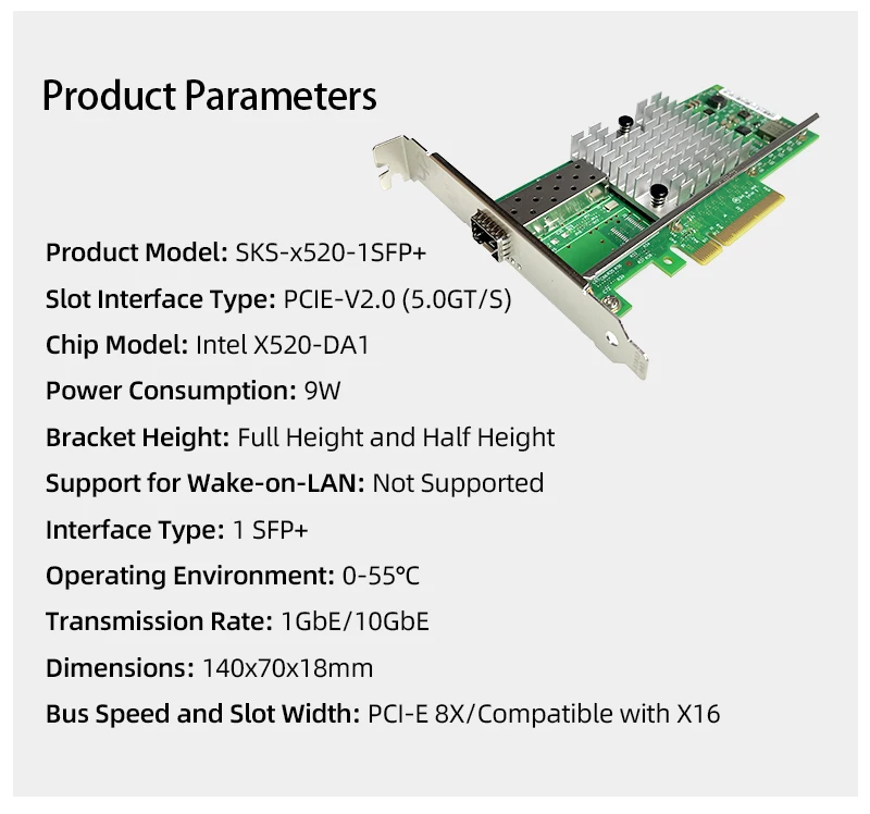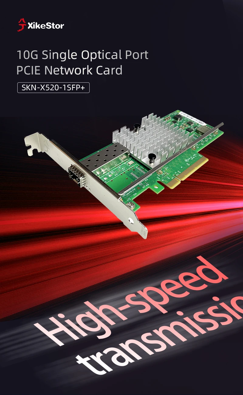 Tarjeta de red Ethernet XikeStor PCIE×8 única SPF+ 10G con chip Intel X520-DA1 para PC/NAS/Server