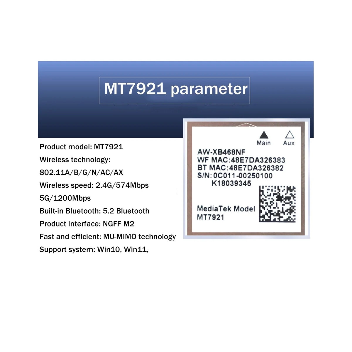 Comprar Tarjeta de red Gigabit MT7921, WIFI6, 2,4G, 5G, ordenador de escritorio, portátil, tarjeta de red inalámbrica integrada con antena integrada
