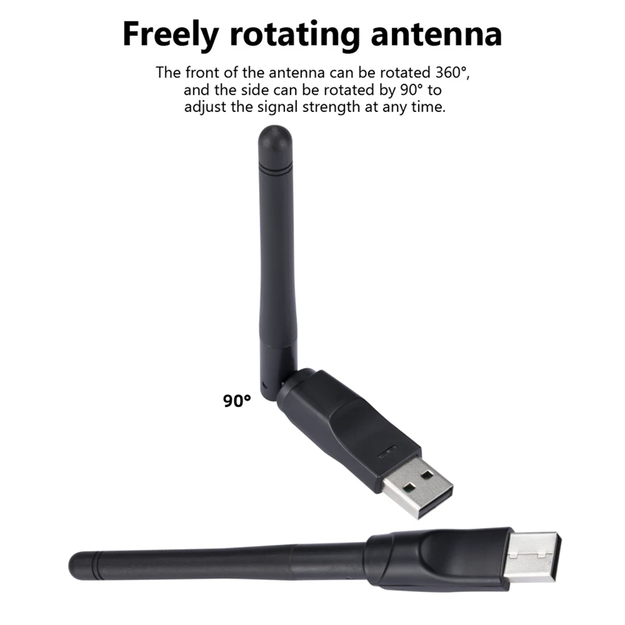 150Mbps MT7601 tarjeta de red inalámbrica Mini USB WiFi adaptador LAN Wi-Fi receptor Dongle antena 802,11 b/G/n para PC portátil WindowsDescripción:Diseño mini portátil USB 2,0Velocidad inalámbrica N de hasta 450Mbps, ideal para navegar por Internet y jugar en líneaCumple con los estándares IEEE 802.11n (Draft 2,0), IEEE 802,11g, IEEE 802.11bProporciona dos modos de trabajo: Infraestructura y Ad-HocLa tecnología MIMO hace que las velocidades de transmisión inalámbrica sean de hasta 150MbpsLa tecnología CCA mejora la estabilidad de la señal al evitar automáticamente conflictos de canalesConfiguración segura rápida, cumple con WPS para una seguridad inalámbrica sin preocupacionesCifrado DE SEGURIDAD inalámbrico fácilmente con solo presionar el botón QSSAdmite WEP de 64/128 bits, así como encriptaciones de WPA/WPA2 y 2/1/1Compatible con los sistemas operativos WIN2K, XP, VISTA, WIN7, WIN10,WIN11,MAC y LINUXAdmite tecnología de roaming inalámbrico para conexiones inalámbricas de alta eficienciaPerfectamente compatible con dispositivos 802.11b/G/nEspecificaciones:Conjunto de chips Ralink:Estándares inalámbricos: IEEE 802.11n, IEEE 802.11g, IEEE 802.11bBanda de frecuencia: banda ISM (Industrial Scientific Medical) de 2,4 GHzRendimiento máximo: 150MbpsCanal: 1 -- 14 canales (selección de dominio universal)Seguridad DE DATOS Cifrado WEP de 16/128 bits WPA, WPA2, WPA2, TKIP/AES, 1, 2, 2, 1, 2, 2, 1, 2, 2, 1, 2, 2, 2, 1, 1, 2, 2, 1Sistema operativo compatible: Windows 2000, XP, Vista, Win7, Linux, MACInterfaz de host: Interfaz USB2.0/1,1 de alta velocidadGanancia de antena: 2dBiTemperatura de funcionamiento: 0oC - 40oCTemperatura de almacenamiento: -20oC - 75oCHumedad de funcionamiento: 10% - 90% RH, (sin condensación)Humedad de almacenamiento: 5% - 95% RH, (sin condensación)Paquete incluido:1 Adaptador LAN inalámbrico USB con antena