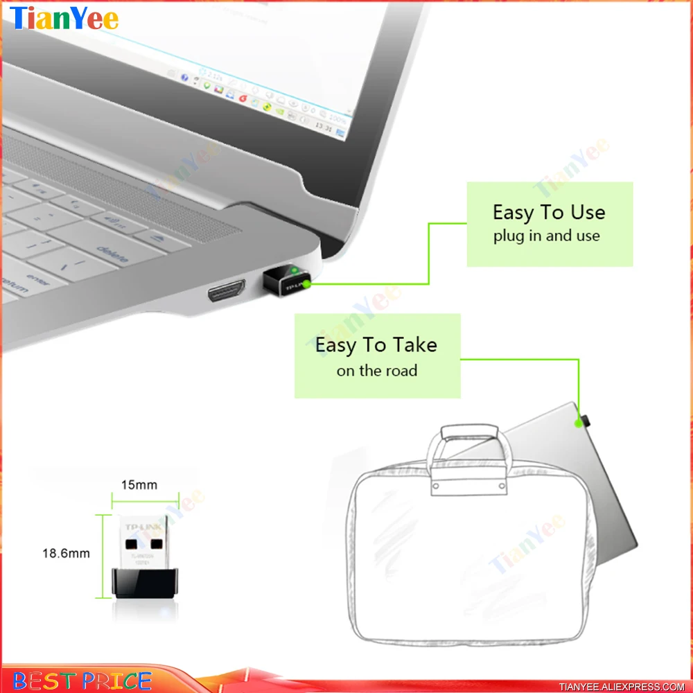 Comprar Tarjeta de red inalámbrica TP-LINK, adaptador Wifi de 150Mbps, IEEE802.11g, 2,4G, USB, compatible con AP analógico, envío rápido