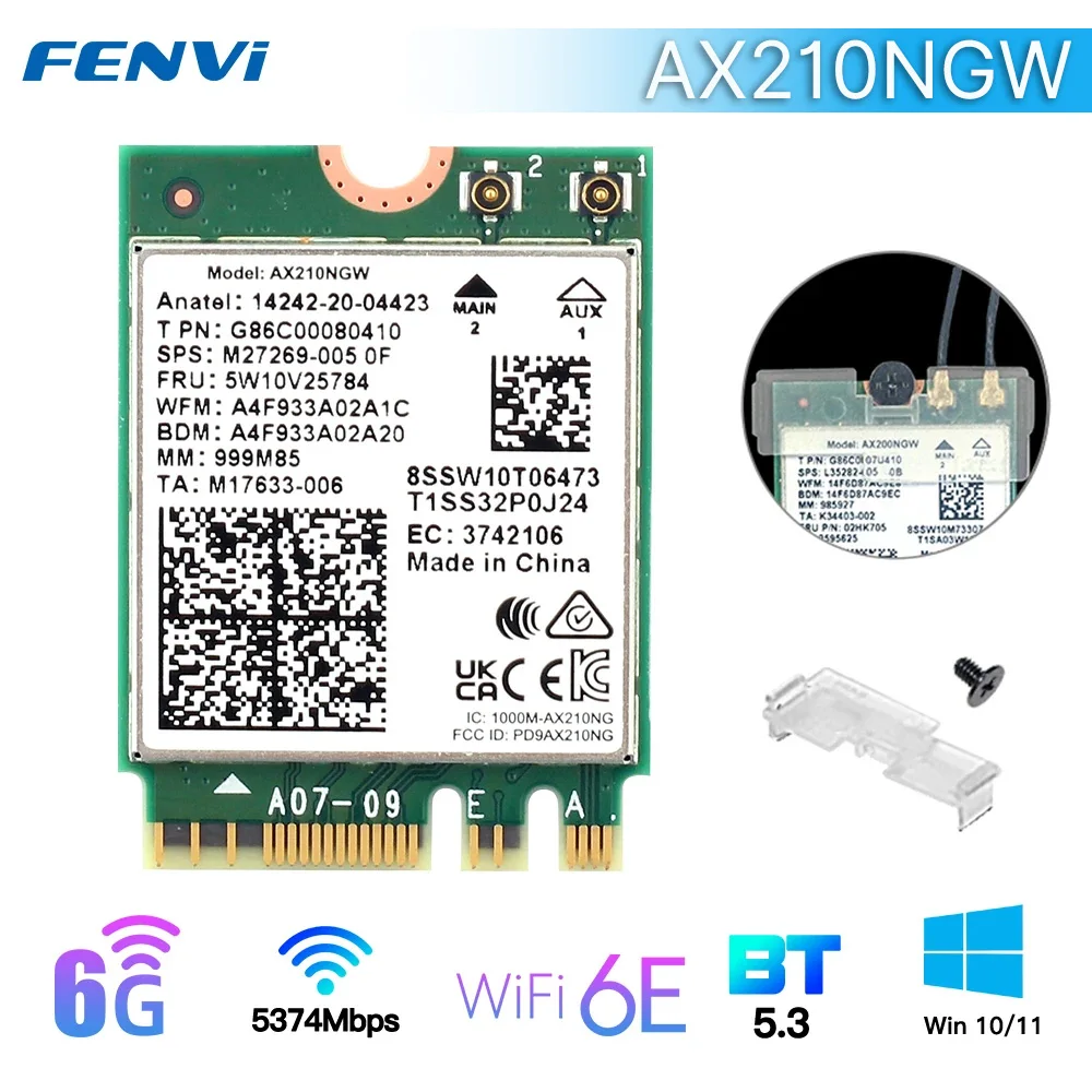 Comprar Tarjeta de red inalámbrica Tri Band WI-FI 6E AX210 M.2 NGFF 5374Mbps para Intel AX210NGW 2,4G/5G/6Ghz 802.11ax Bluetooth5.3 Win 10/11