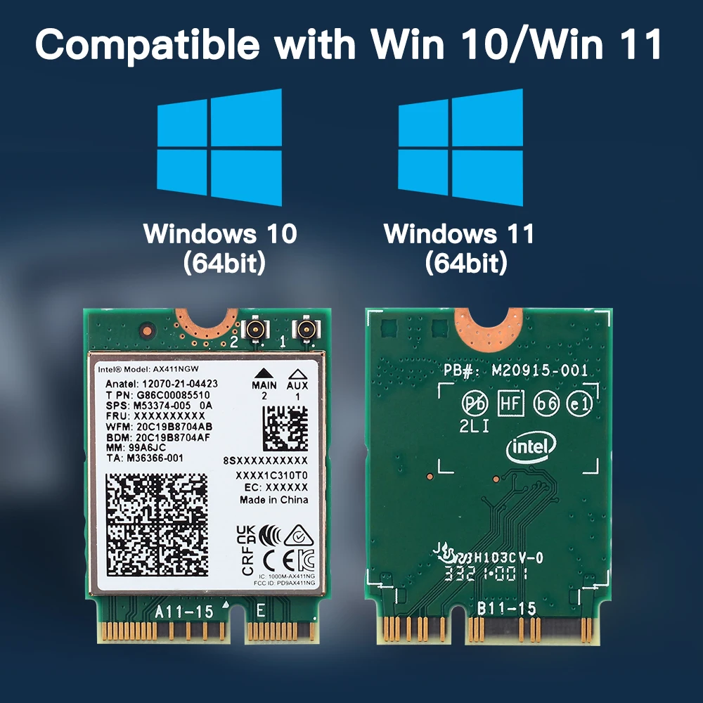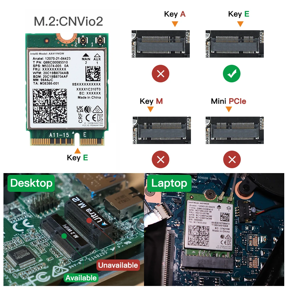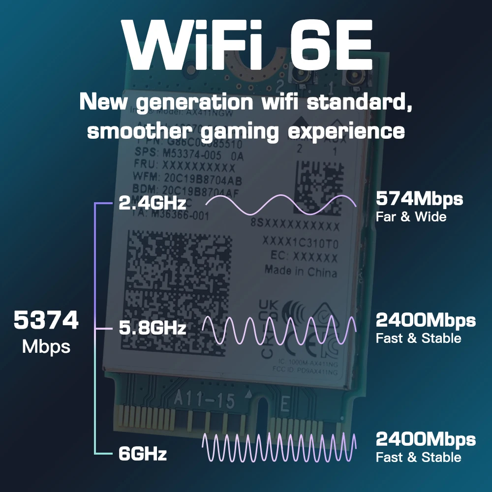 Comprar Tarjeta de red inalámbrica WiFi 6E, dispositivo Intel AX411, CNVio2 para Bluetooth 5,3, 2,4G/5G/6G, 802, 11ax/ac, portátil/PC para Win 10 11