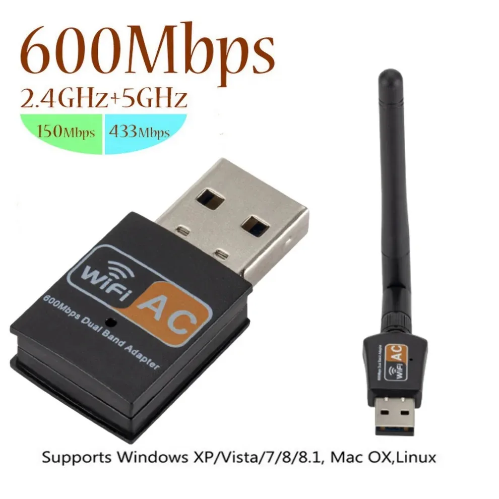 Comprar Tarjeta de red inalámbrica WiFi USB, adaptador WiFi USB de 600Mbps, dongle wifi de doble banda de 2,4 GHz/5GHz con antena giratoria para ordenador portátil y PC