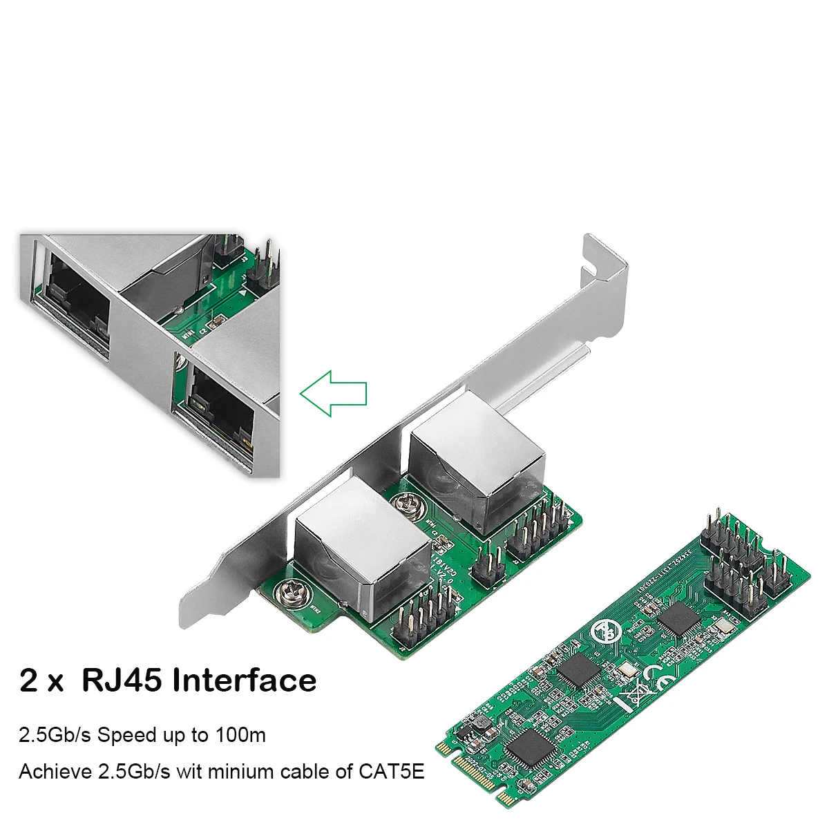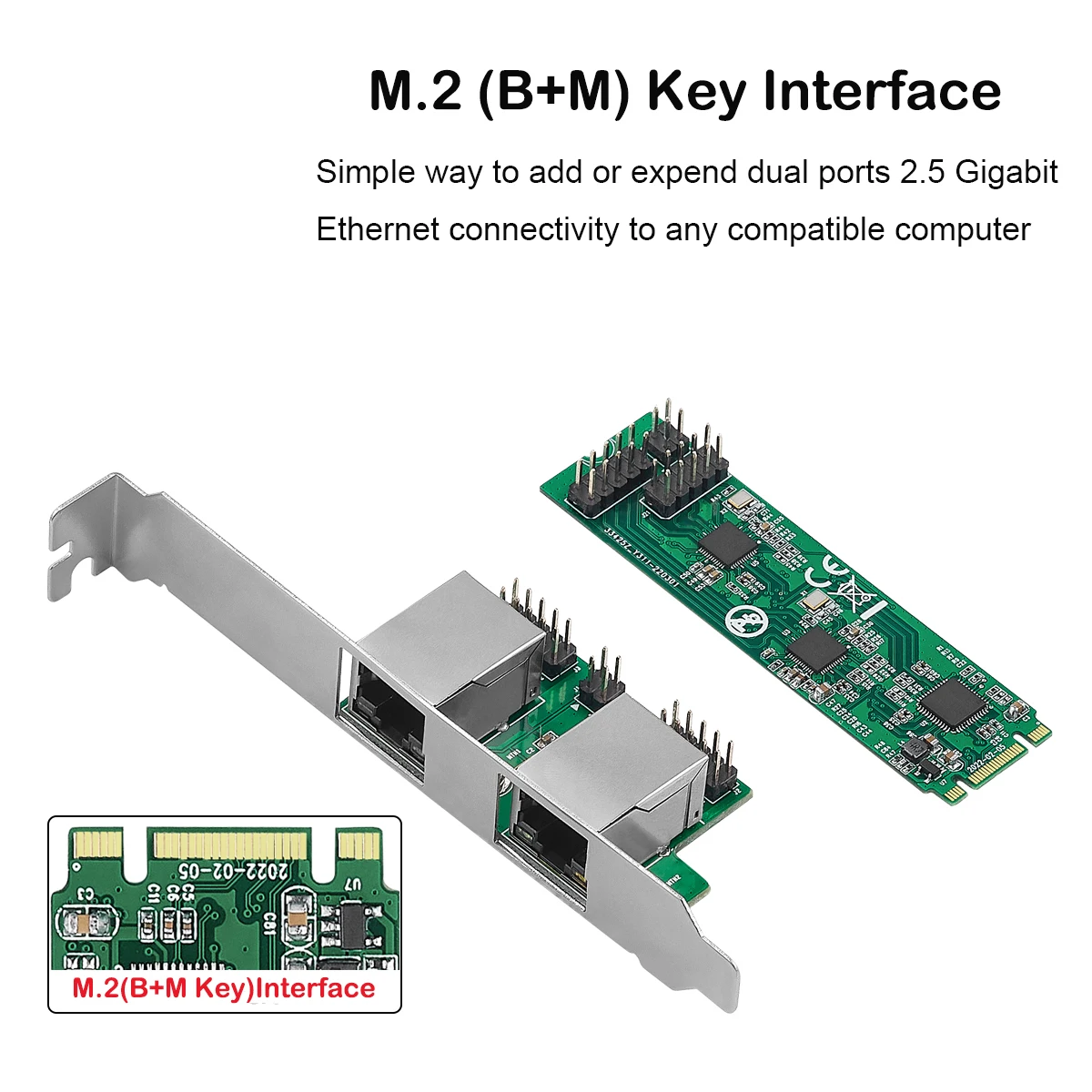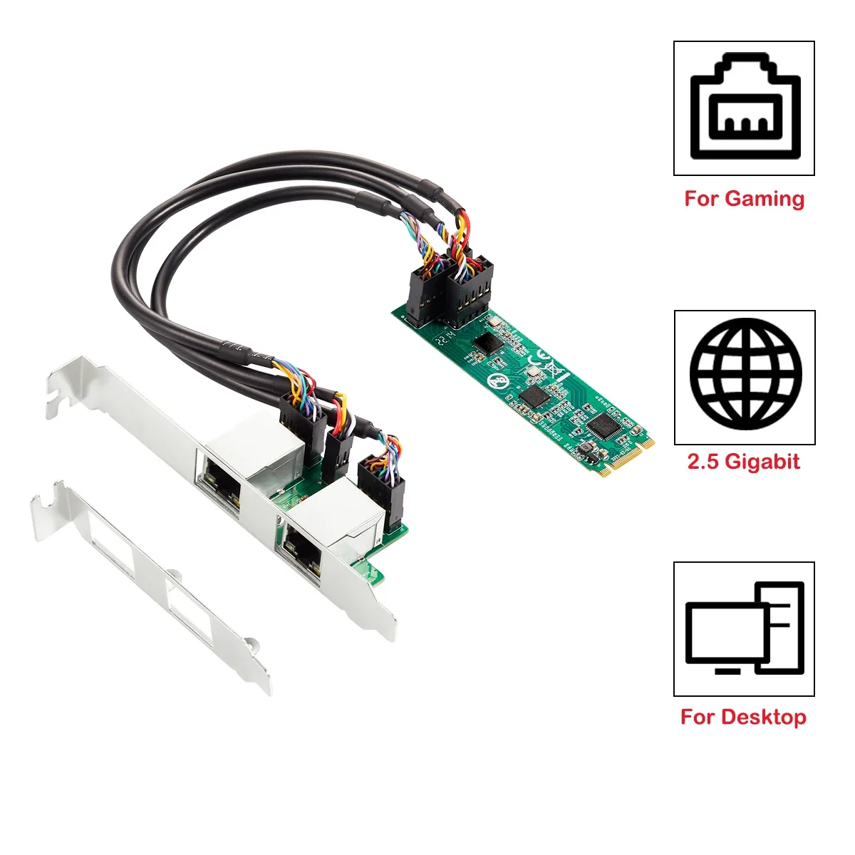 Comprar Tarjeta de red IOCREST M.2 a puerto dual 2,5G Ethernet NIC M.2 22*80mm tamaño B clave y M 2500 Mbps RTL8125B Chipset