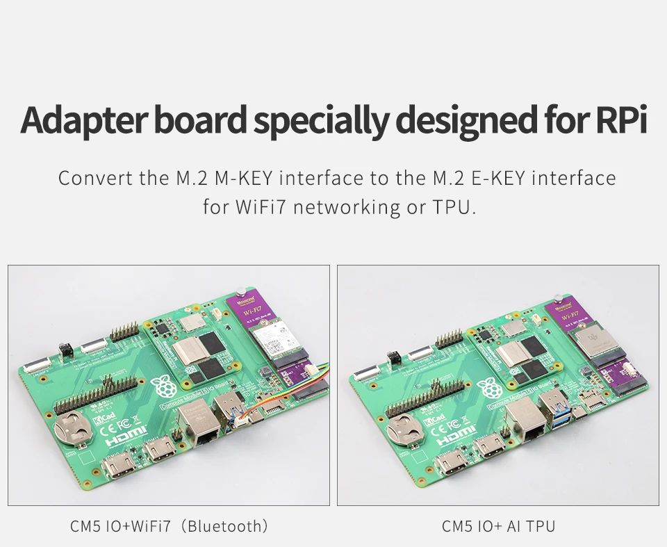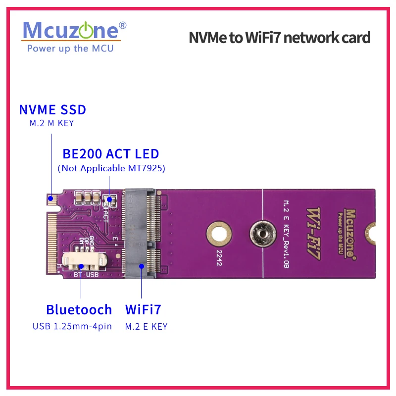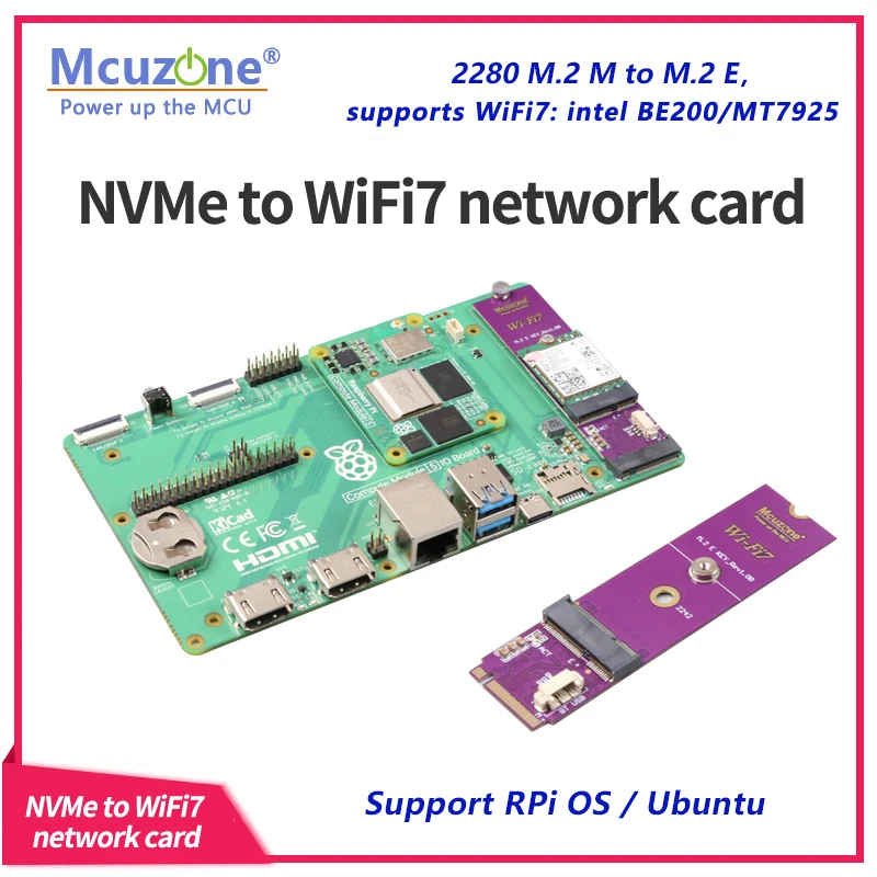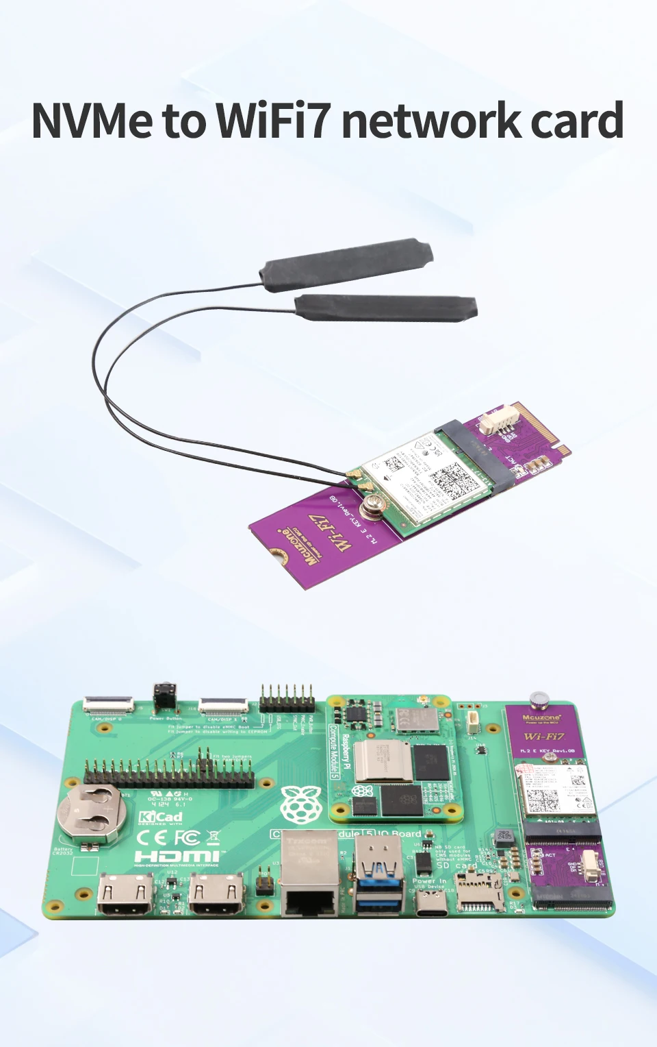 Comprar Tarjeta de red NVME a WiFi7, M.2 M-KEY a M.2 E-KEY, BE200,MT7925, Raspberry Pi CM5 IO