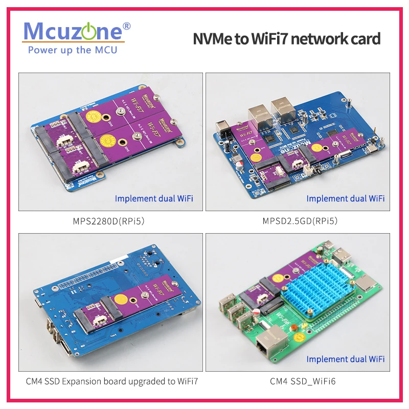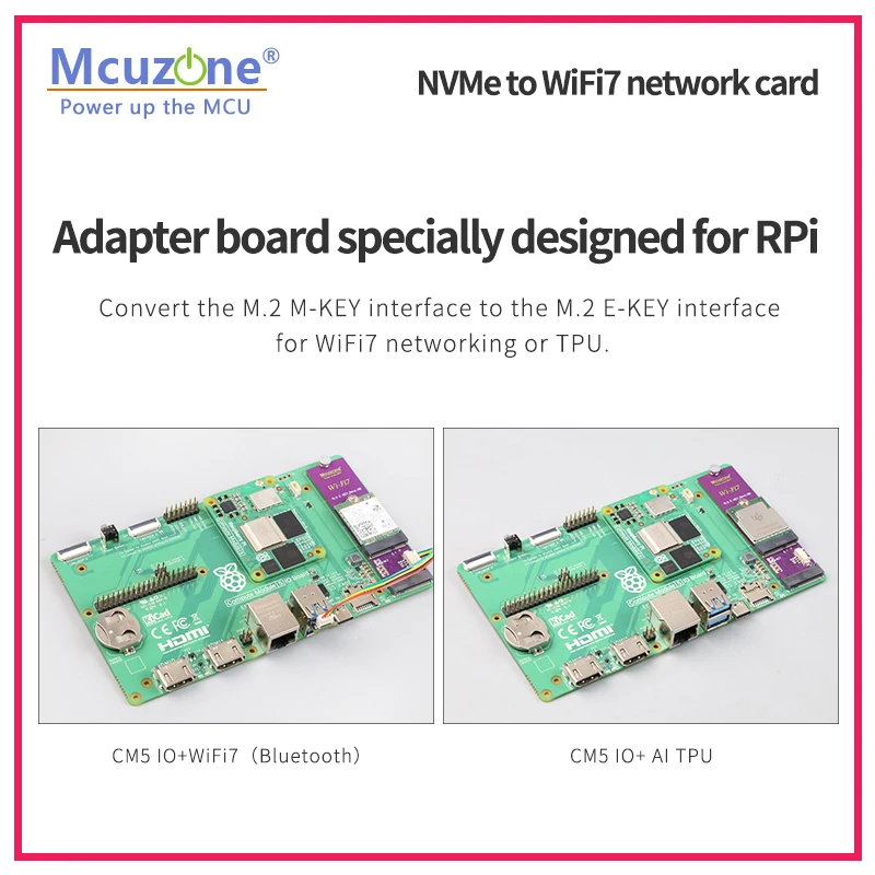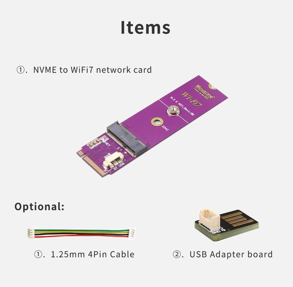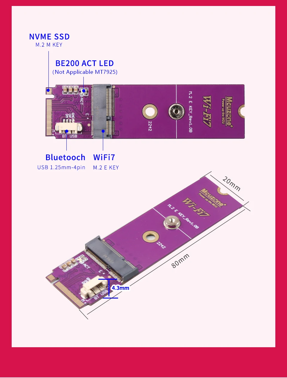 Comprar Tarjeta de red NVME a WiFi7, M.2 M-KEY a M.2 E-KEY, BE200,MT7925, Raspberry Pi CM5 IO
