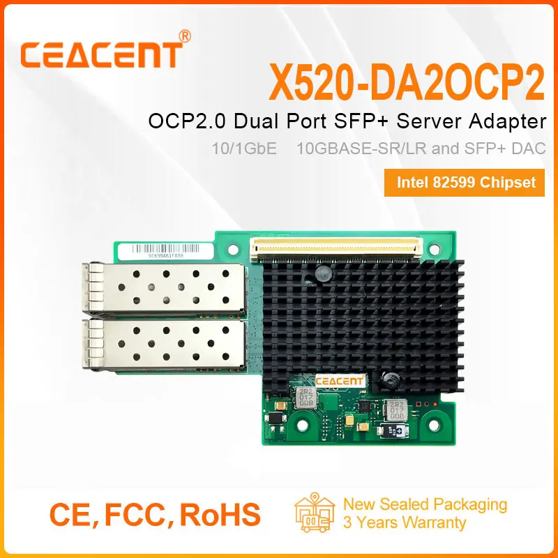 Comprar Tarjeta de red OCP2.0 de 10G, X520-DA2OCP2, Mezzanine, chipset Intel 82599, puerto Dual SFP + PCIe 2,0x8 para servidor de proyectos de ordenador abierto