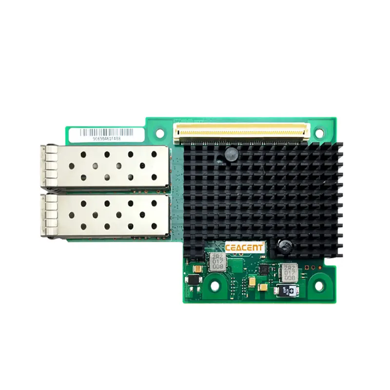 CEACENT 82599 es un adaptador de servidor de fibra de 10 Gigabit de doble puerto basado en Intel 2,0, desarrollado independientemente por Ceacent Electronics Ltd, con especificación de protocolo OCP. El diseño de esta tarjeta adaptadora de servidor tiene como objetivo optimizar los equipos de rack para servidores y proyectos de computación abierta (OCP) de alta gama, que pueden manejar mejor las aplicaciones intensivas basadas en datos. Al utilizar esta tarjeta adaptadora de servidor, es fácil diseñar y aplicar servidores y centros de datos más eficientes compartidos por industrias de TI ordinarias, que ayuda a promover el diseño y la práctica de servidores más eficientes y manejar cargas de trabajo específicas y desafiantes.