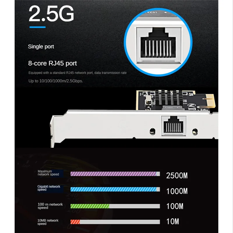 Comprar Tarjeta de red PCIE de 2,5 Gbps, adaptador de tarjeta de red Gigabit de 2500Mbps, 10/100/1000Mbps, RTL8125, RJ45