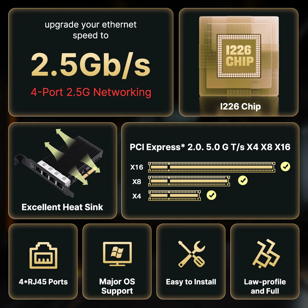 Tarjeta de red 2.5G: Tarjeta Ethernet Gigabit RJ45 de 4 puertos