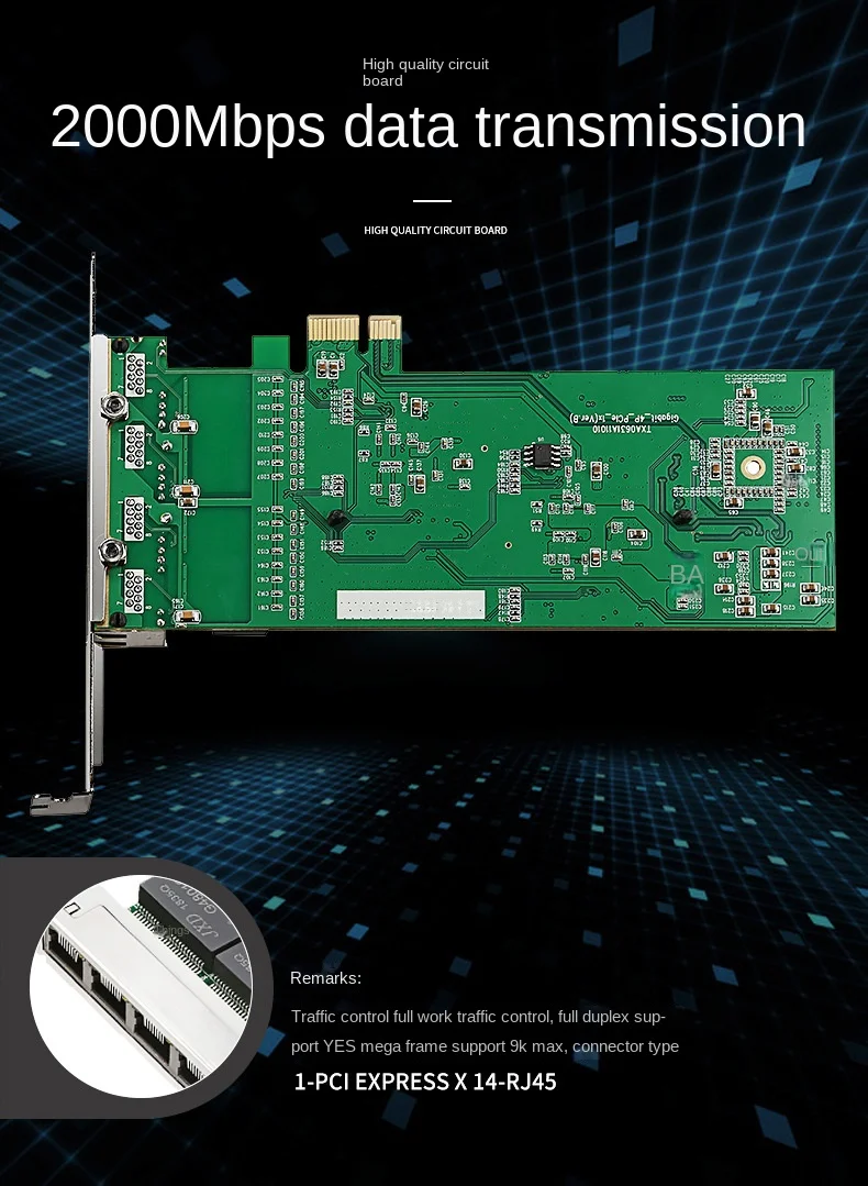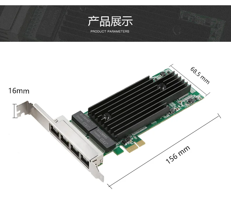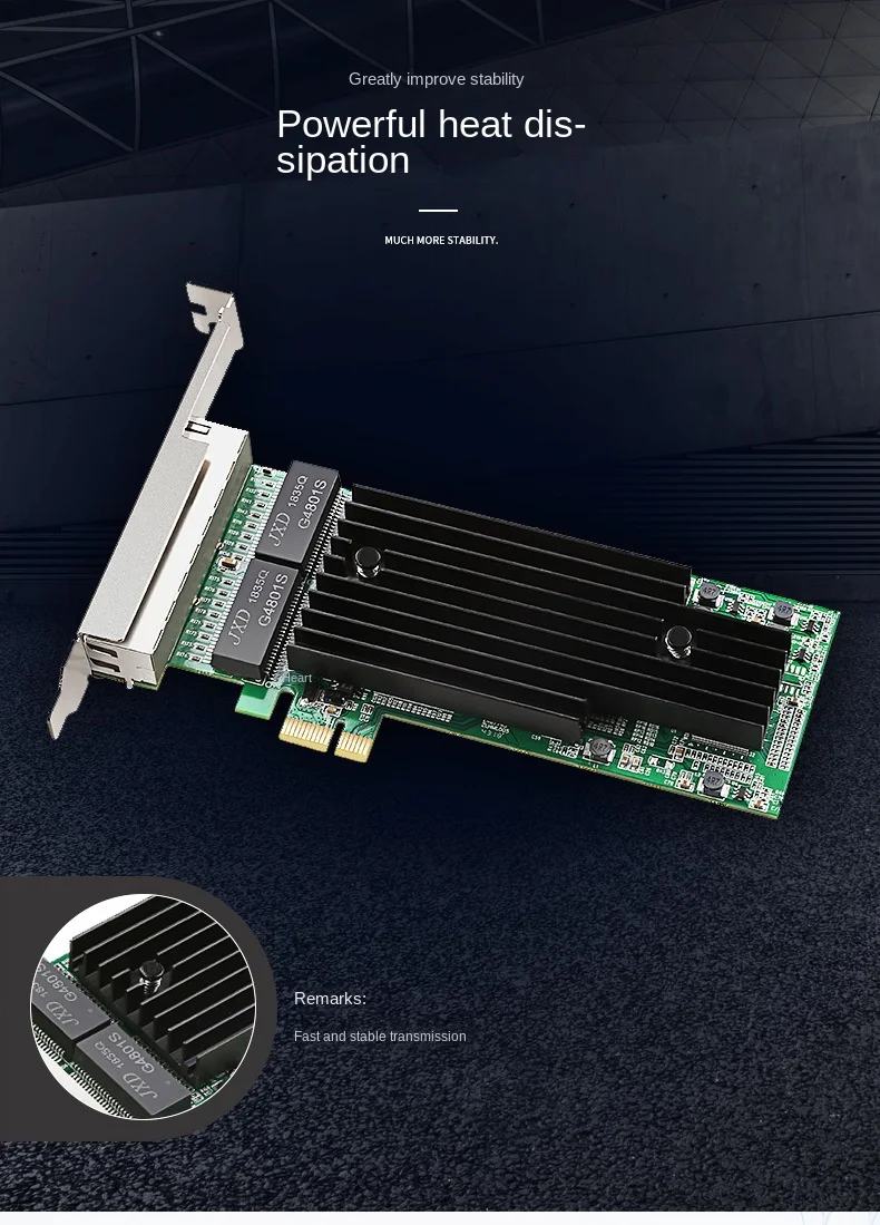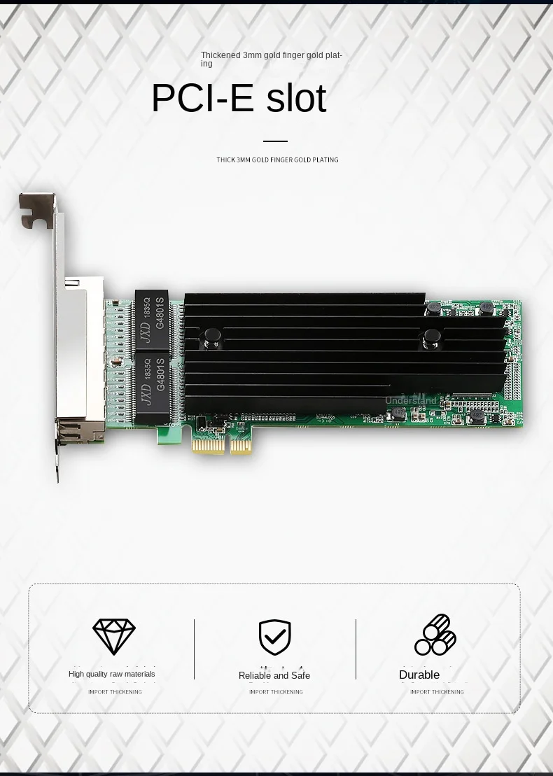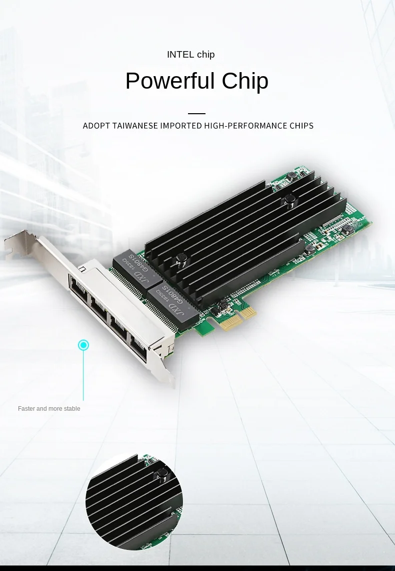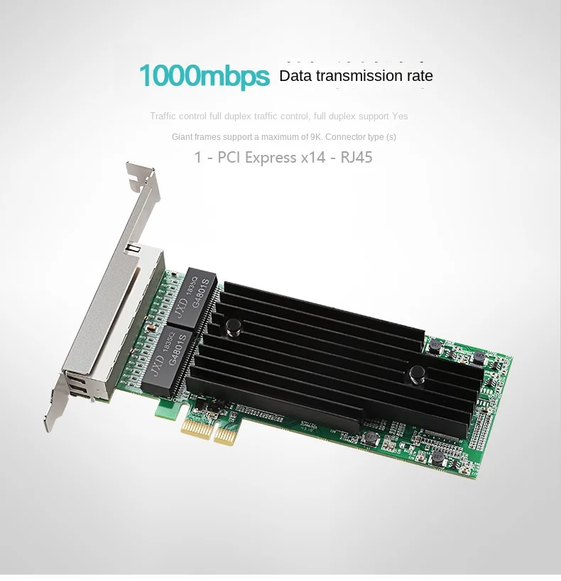 Comprar Tarjeta de red PCIE Gigabit, servidor de 4 puertos, escritorio 82576 T4, sin llave, conversión, enrutamiento suave de chasis pequeño