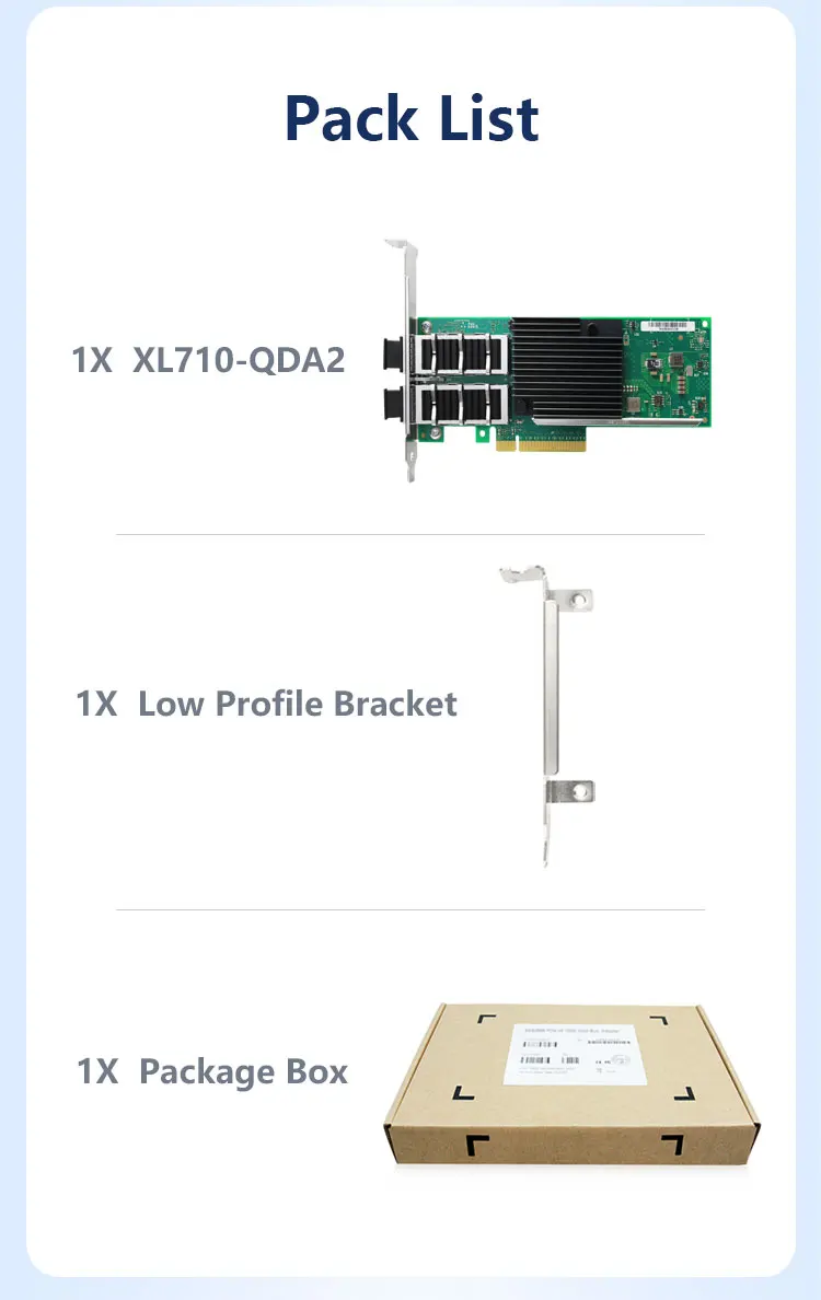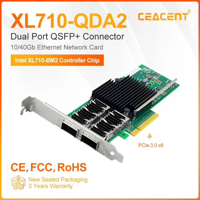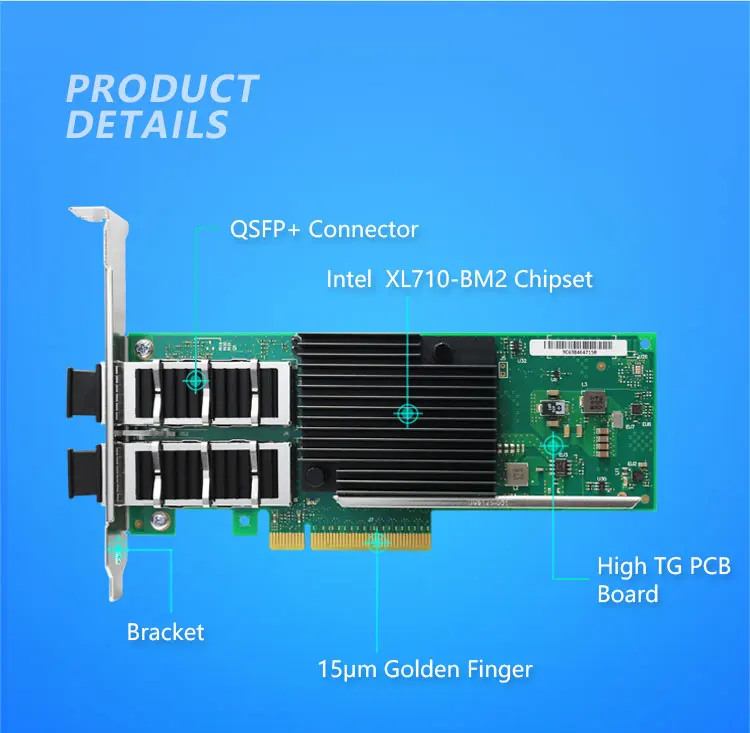 Comprar Tarjeta de red de servidor de doble puerto, chip Intel XL710, XL710-QDA2, 40/10GbE, QSFP + conector PCIe 3,0x8 NIC, perfil bajo y altura completa