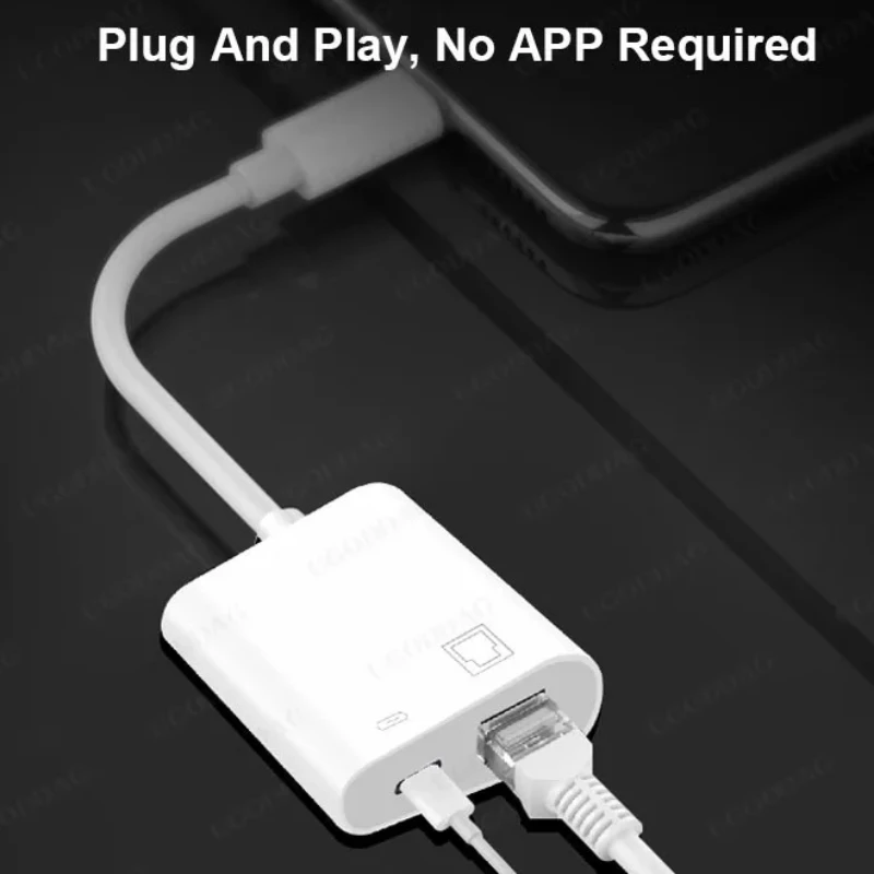 Comprar Tarjeta de red tipo C a puerto RJ45, adaptador convertidor Ethernet de carga PD para teléfono móvil, conexión estable para Chromecast, Google TV