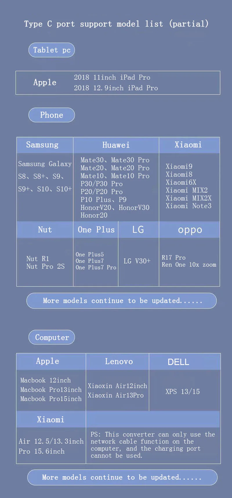 1.Asegúrese de que el puerto USB-C del host de su dispositivo cumpla con la especificación USB 3.0/USB 3.1.Compatible con dispositivos USB 2.0 tipo C.