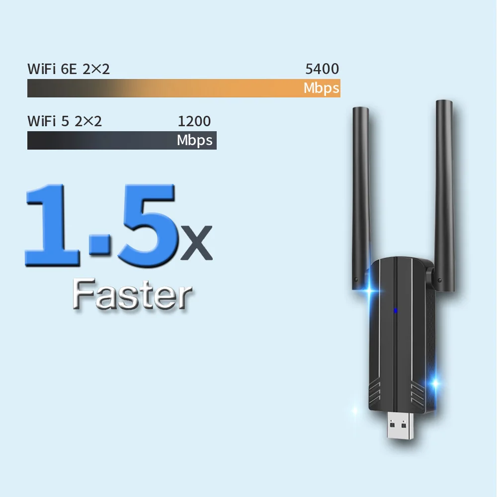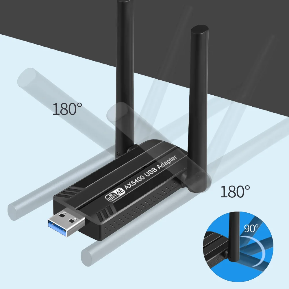 Comprar Tarjeta de red USB 5400 de 3,0 Mbps, adaptador de red WiFi 6E de 2,4G/5G/6G, Dongle WiFi de tres bandas, 10/11 receptor para Win, SIN controlador