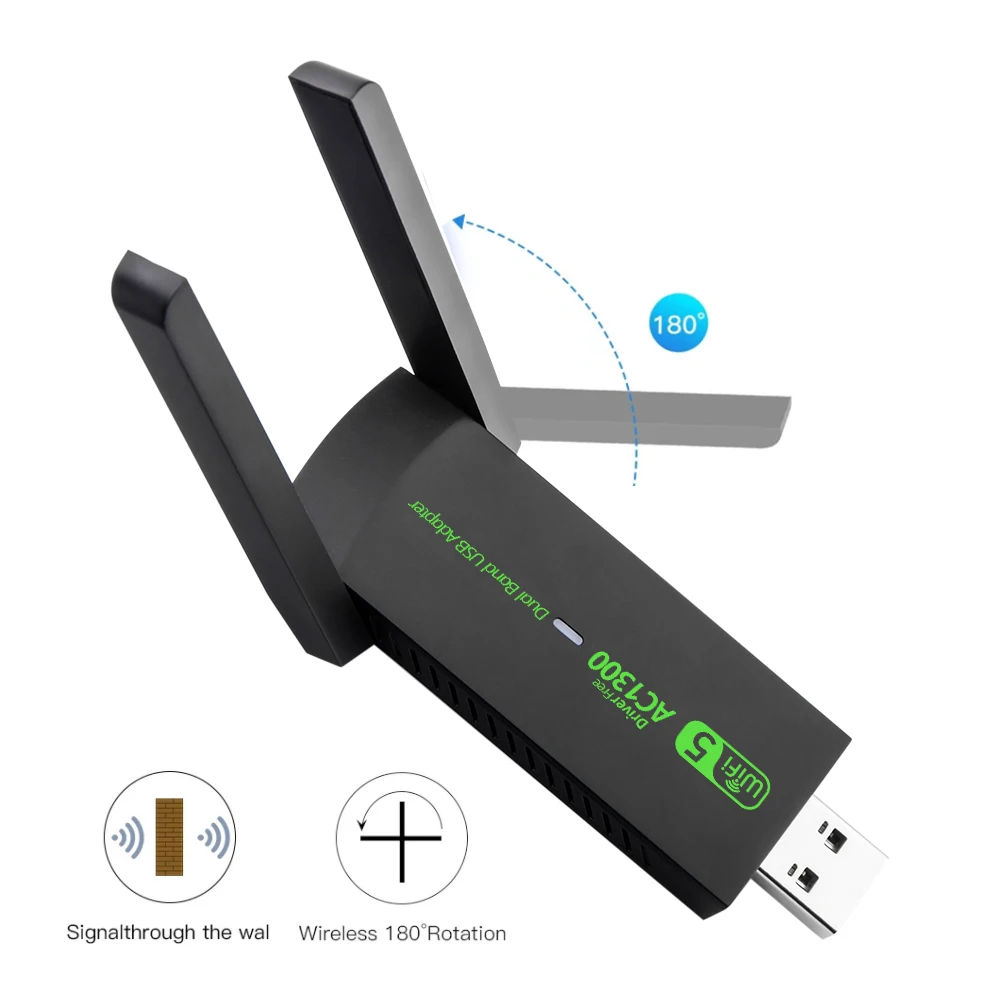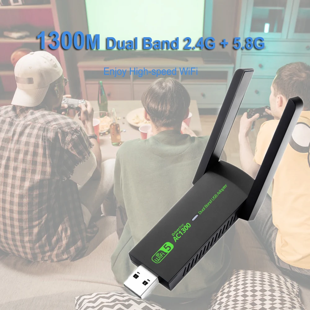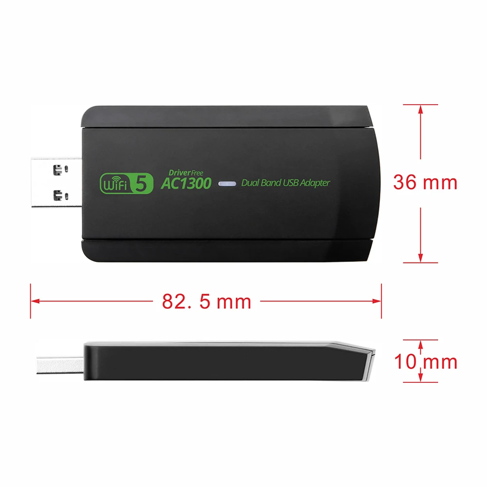 Comprar Tarjeta de red USB de doble banda 2,4G/5GHz, adaptador WiFi USB 3,0, receptor inalámbrico de alta velocidad de 1300Mbps para accesorios de ordenador portátil y PC