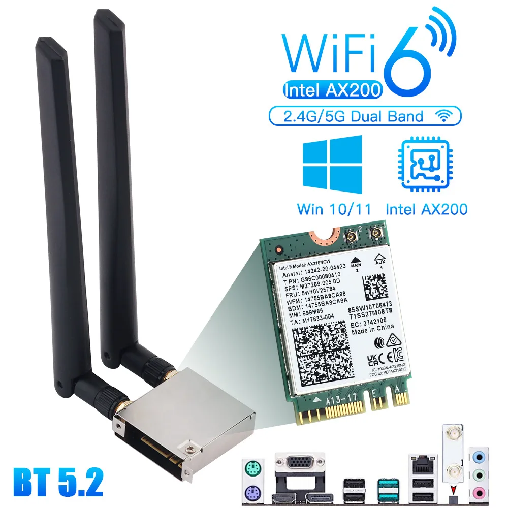Comprar Tarjeta de red WiFi 6E Intel AX210, adaptador inalámbrico de 5374Mbps, WiFi-6, AX200, BT5.3, para PC Asus H610M-A, B660M, B550, Z370, X470