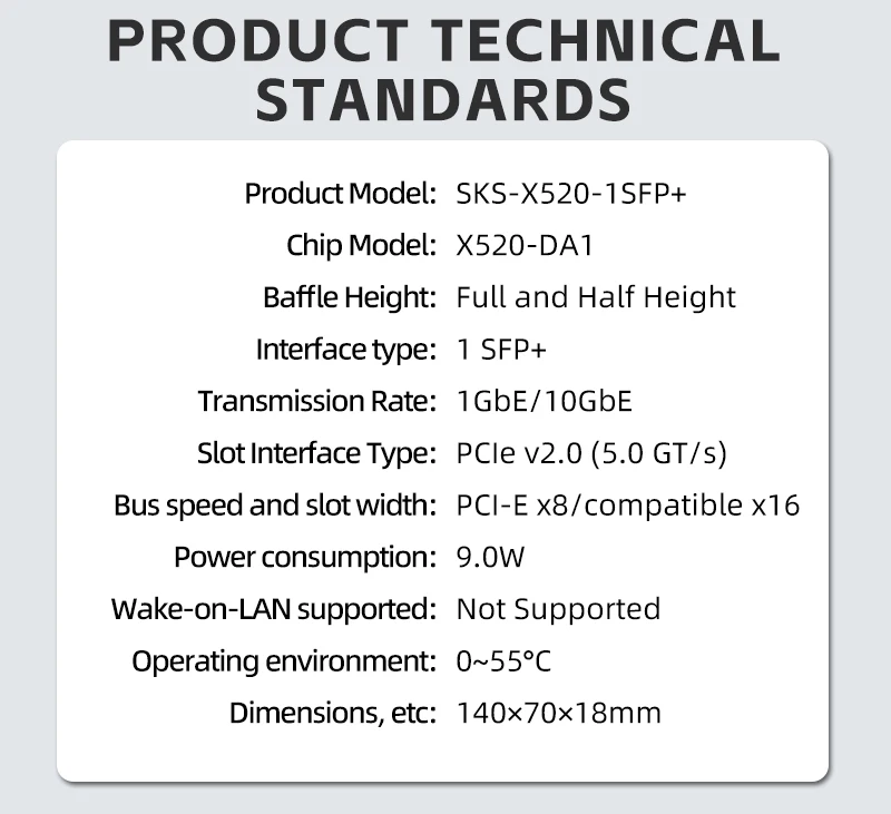 Comprar Tarjeta de red Xike 10G SFP+ Intel X520-DA1 Controles principales Tasa de transmisión 1GbE/10GbE PCIex8 altura total, media altura universal