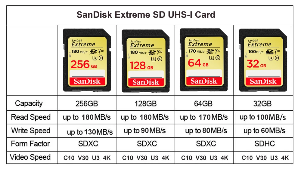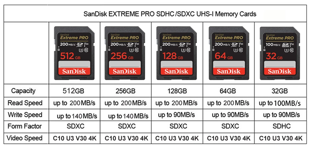 Comprar Tarjeta SD SanDisk Extreme PRO 32G 64G 128G 256G SDHC SDXC UHS-I C10 100M/s-200MB/s U3 tarjeta de memoria compatible con V30 4K para cámara/DV/SLR