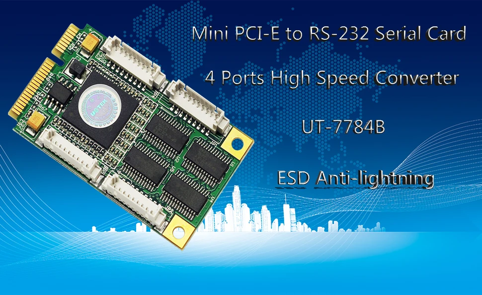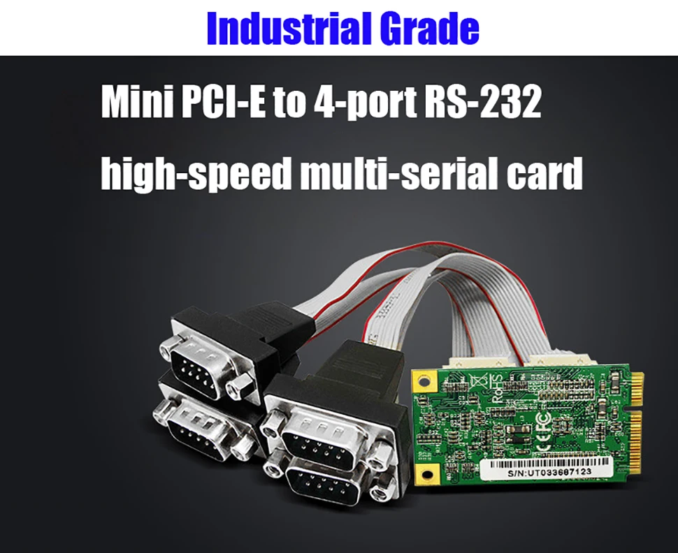 Comprar Tarjeta serie UOTEK Mini PCI-E a RS-232 PCIE PCI Express a RS232 convertidor de alta velocidad de 4 puertos DB9 ESD UT-7784B antirayos
