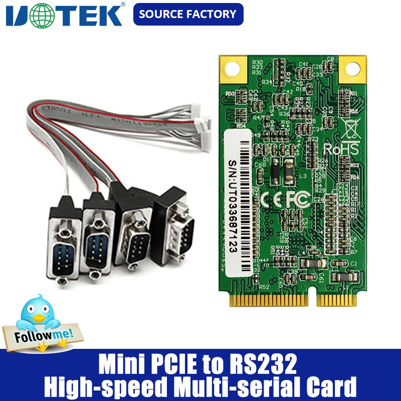 Comprar Tarjeta serie UOTEK Mini PCI-E a RS-232 PCIE PCI Express a RS232 convertidor de alta velocidad de 4 puertos DB9 ESD UT-7784B antirayos