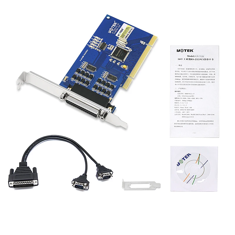 Cada puerto es capaz de velocidades de transferencia de datos de hasta 921,6 Kbps, lo que proporciona señales de control de módem para garantizar la compatibilidad con los periféricos de los dispositivos serie.el UT-752E puede funcionar bajo bus PCI de 3,3 V y 5 V, lo que permite instalar la tarjeta multiserial en cualquier PC o servidor disponible.