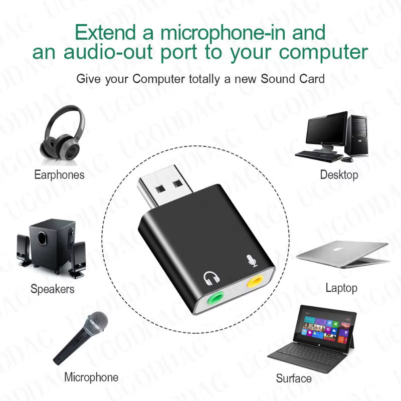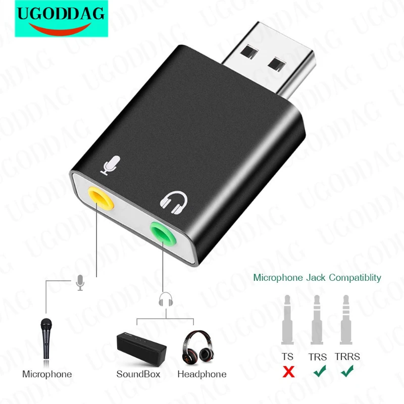 Comprar Tarjeta de sonido de Audio USB externa, convertidor USB a Jack de 3,5mm, adaptador de auriculares, micrófono, tarjeta de sonido, auriculares, micrófono Virtual de 7,1 canales
