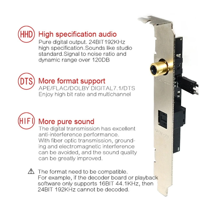 Especificaciones:Nombre del artículo: tarjeta hija SPDIF