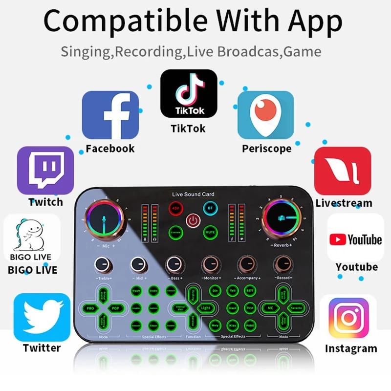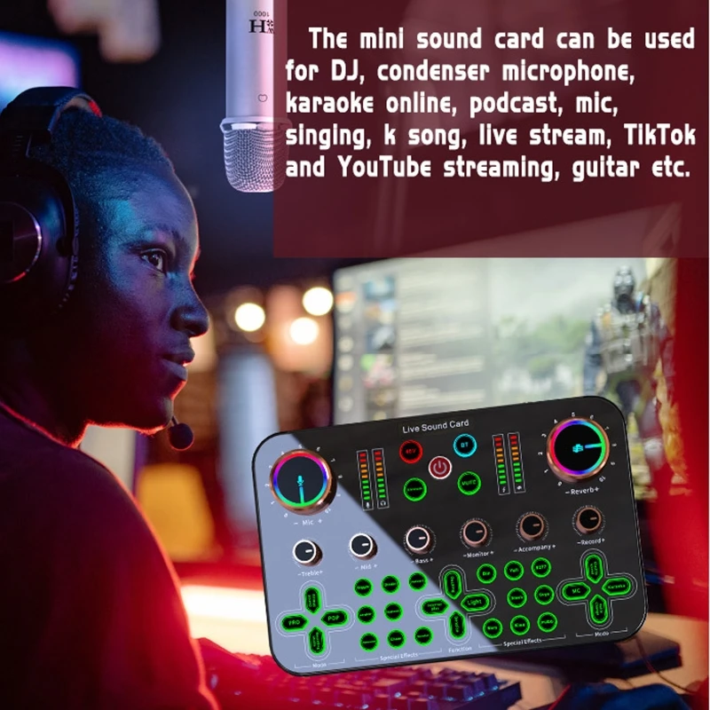 Nuestra tarjeta de sonido cambiador de voz adopta un chip de procesamiento inteligente para ajustar el ritmo, haciendo la señal estable y clara, y la salida es mejor. También es compatible con Bluetooth inalámbrico.