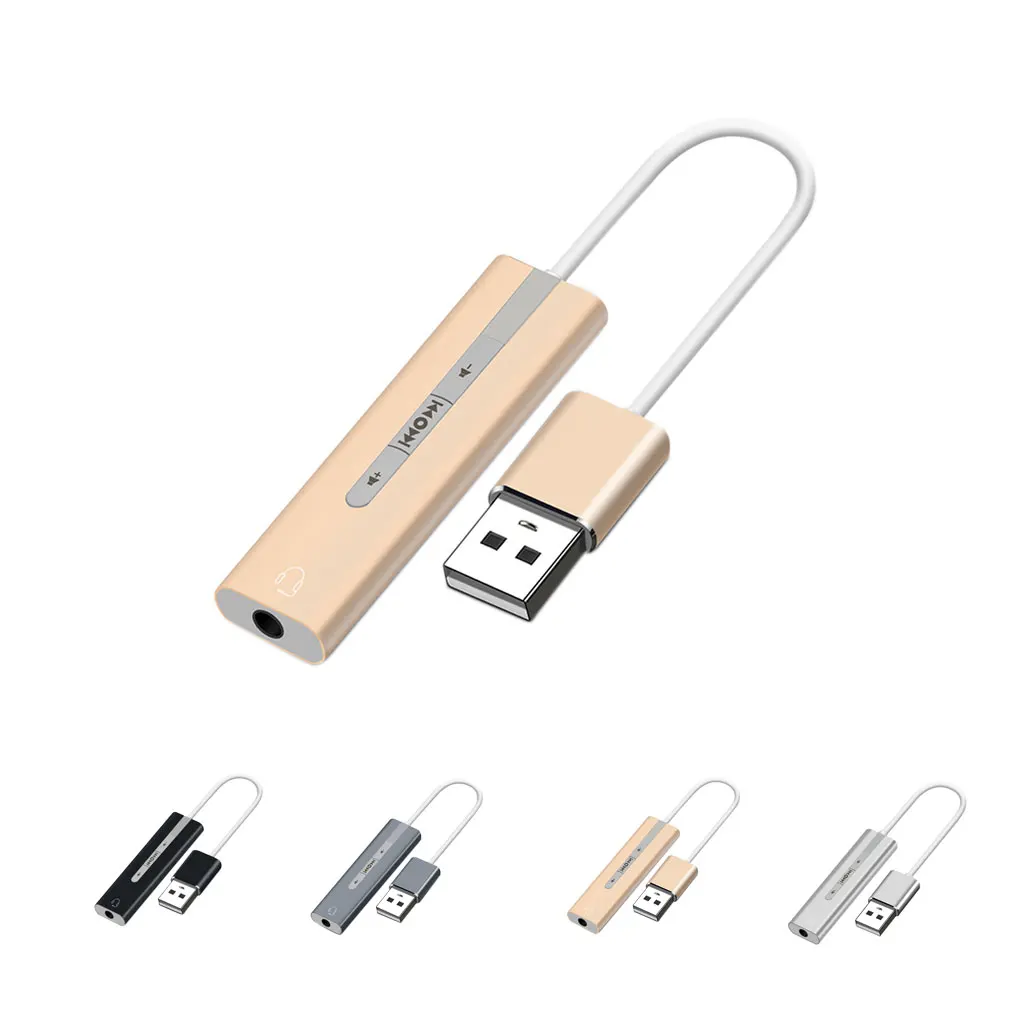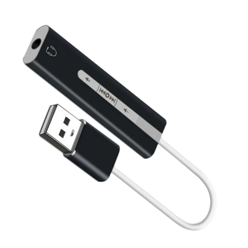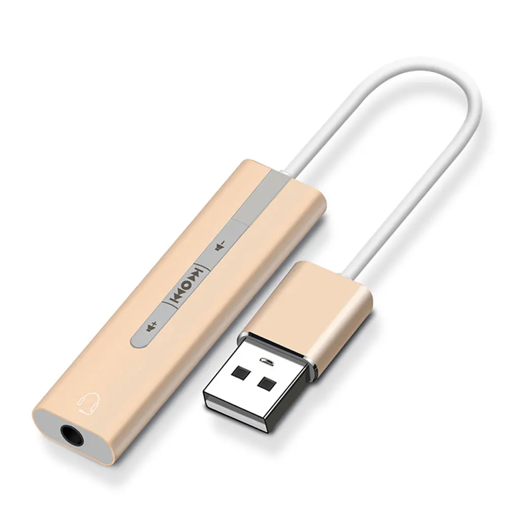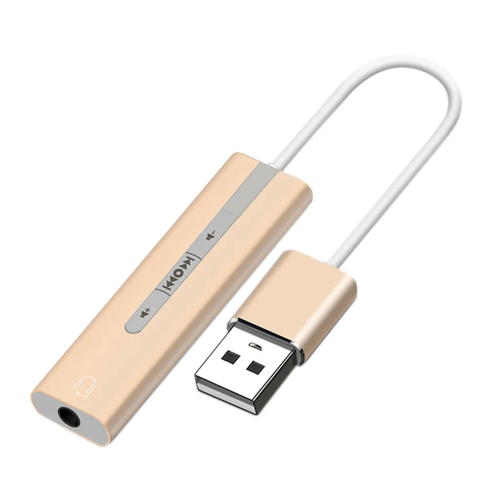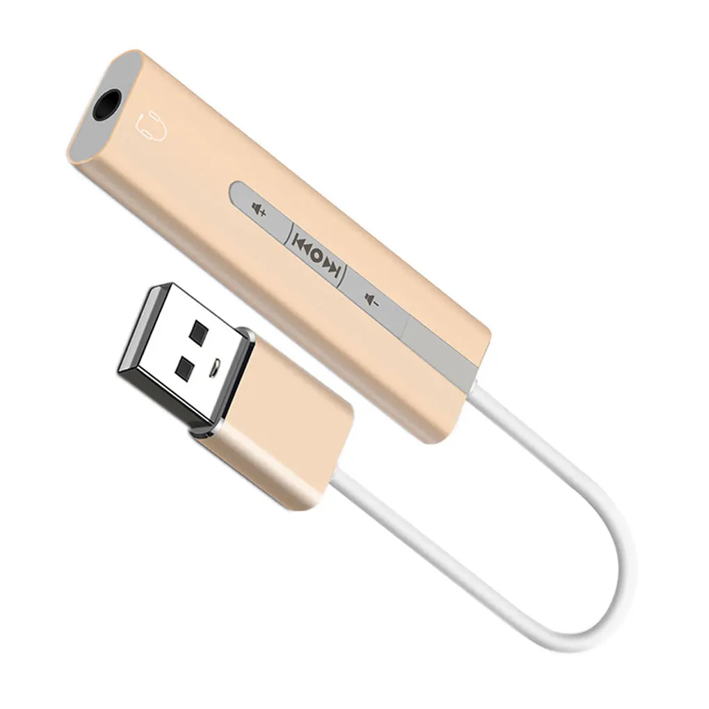 Descripción: Esta tarjeta de sonido USB externa está hecha de aleación de aluminio, es resistente, no es fácil de deformar y puede usarla durante mucho tiempo. Esta tarjeta de sonido USB utiliza un diseño de cable, no afectará al puerto USB cercano, por lo que puede conectar otro dispositivo USB. Diseñado con 7,1 canales de sonido, este adaptador de audio USB a 3,5mm puede brindarle un rendimiento de sonido estéreo y le permite sumergirse en el juego o la música. Este Adaptador de audio USB es una tarjeta de sonido externa, puede usarlo para una computadora portátil que no tiene un puerto de micrófono o una computadora que la tarjeta de sonido no funciona correctamente. Este adaptador de audio es fácil de usar, el botón en la superficie puede controlar la reproducción de música, pausa y volumen. Especificación: Material: aleación de aluminio. Color: Negro, gris, dorado, plateado. Tamaño: 52*14*7,3mm. Nota Puede haber un poco de distorsión de color debido a las diferentes resoluciones del ordenador. Puede haber un pequeño error debido a diferentes mediciones manuales. Paquete incluido: 1 * Tarjeta de sonido USB.