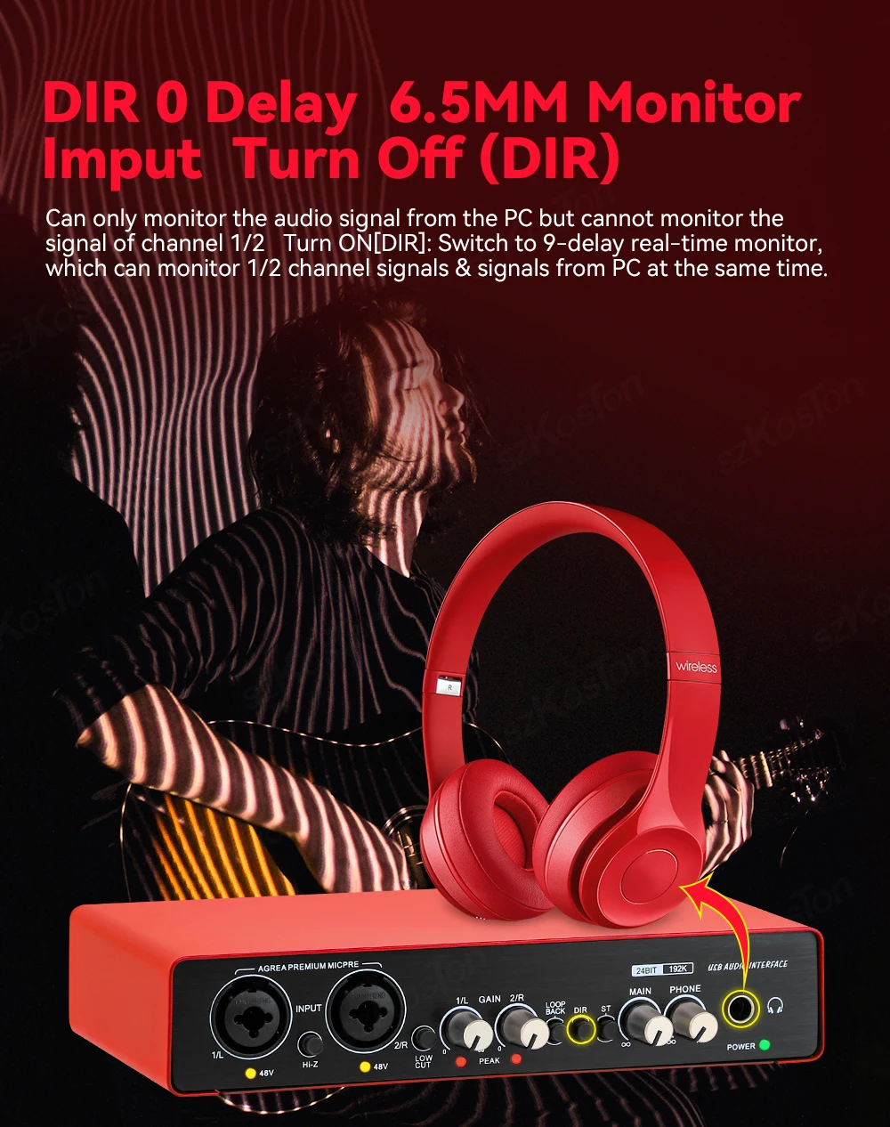 【Monitoreo de "latencia cero": el control de mezcla de la interfaz de audio permite un monitoreo directo de latencia cero, lo que significa que los músicos pueden experimentar su interpretación con claridad, sin demoras ni retrasos en la señal de retorno, lo que resulta en un mejor rendimiento y grabación.