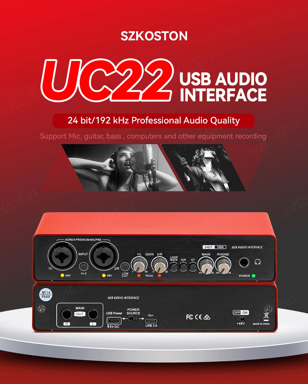【Calidad de audio profesional de 24 bits/192 kHz】 Interfaz de audio, con todas las interfaces de conexión para micrófono, guitarra eléctrica, bajo, etc.Esto incluye una fuente de alimentación fantasma de +48 V para micrófonos de condensador y un preamplificador de micrófono HI-Z; La interfaz de audio UC22 tiene un convertidor de 24 bits/192 kHz de grado estudio para una calidad de sonido óptima.Si usted es cantante, creadora, productor en movimiento o necesita acompañarlo durante la grabación, la interfaz de audio UC22 ultra confiable lo ayudará a brillar en el campo digital.