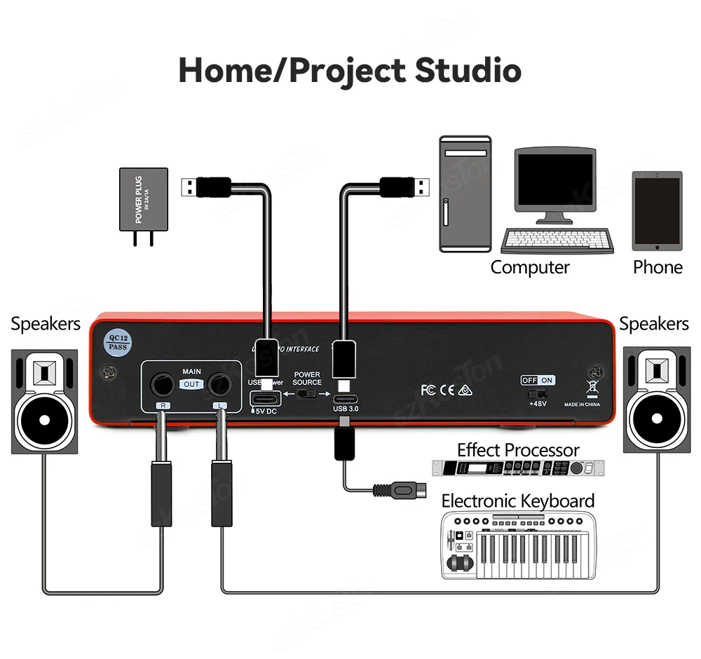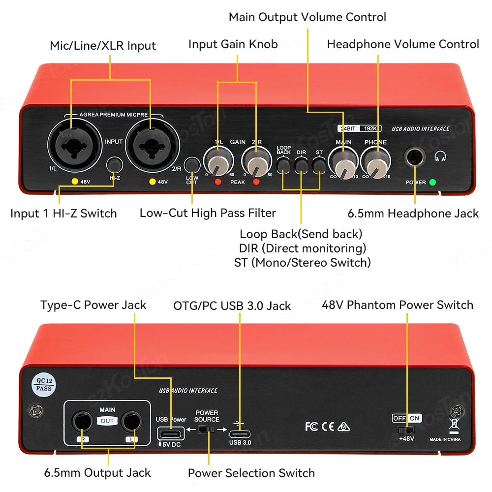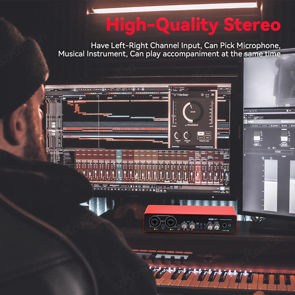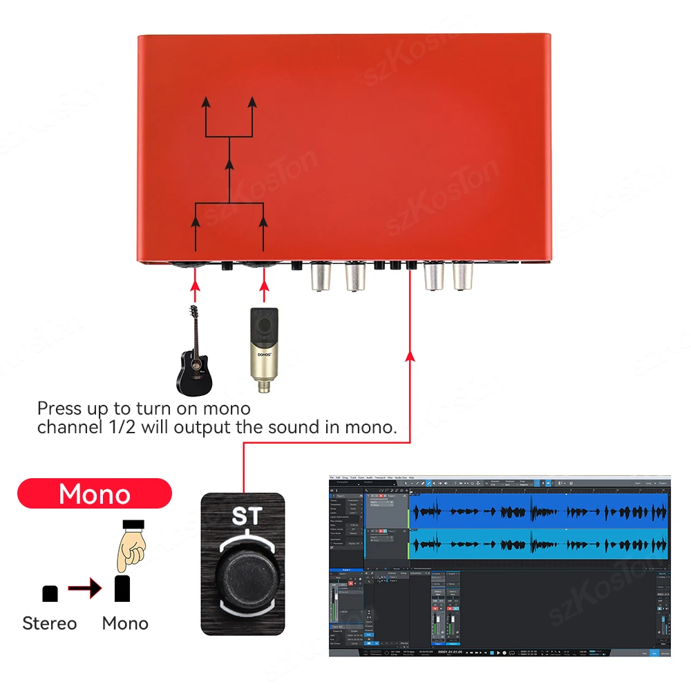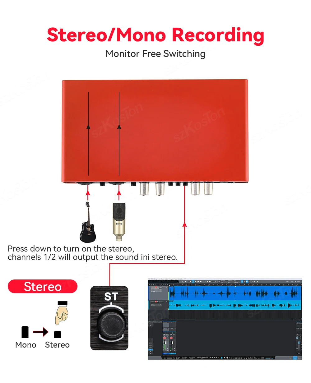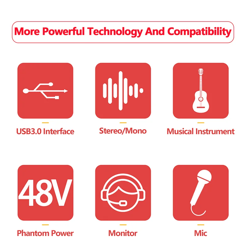 【Salida estéreo/mono, asistente de creación de grabación perfecto】 La tarjeta de sonido tiene entrada de canal izquierdo y derecho, que puede reflejar la posición espacial de diferentes fuentes de sonido durante la grabación.Se puede conectar a micrófonos e instrumentos al mismo tiempo para la producción musical y puede reproducir acompañamiento en la computadora para grabar al mismo tiempo.Por supuesto, también puede admitir el cambio de salida estéreo/mono para grabar.También puedes conectar altavoces para emitir música a través de los canales izquierdo y derecho.