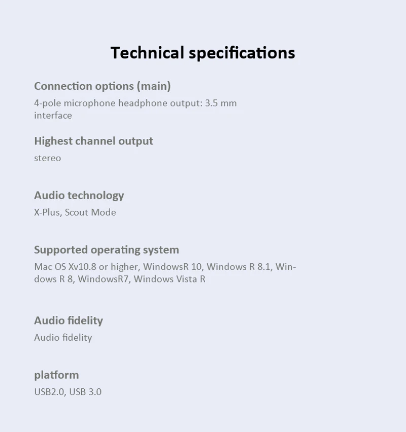 Otras funciones: Interruptor de micrófono, ajuste de volumen Sistemas compatibles: Os Xv10.8, Windows10, Windows8.1, Windows8, Windows7, WindowsVista