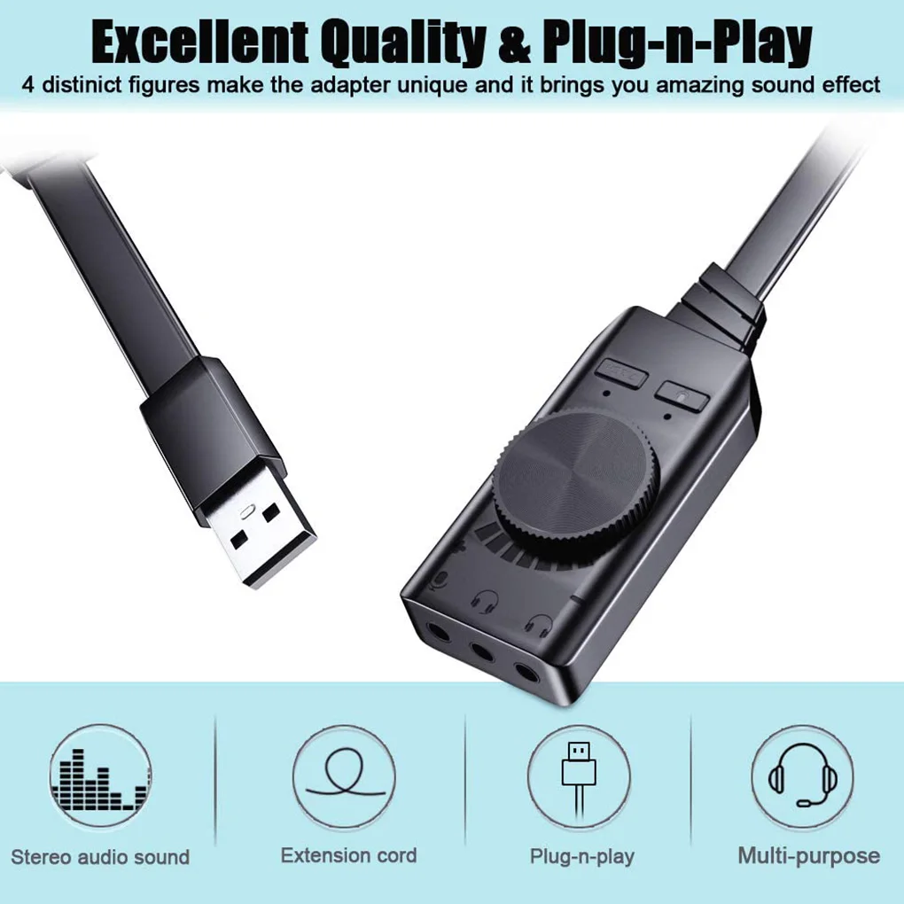 La tarjeta de sonido USB está diseñada con un ajustador de forma de rueda, que le permite mejorar el nivel de audio del juego.