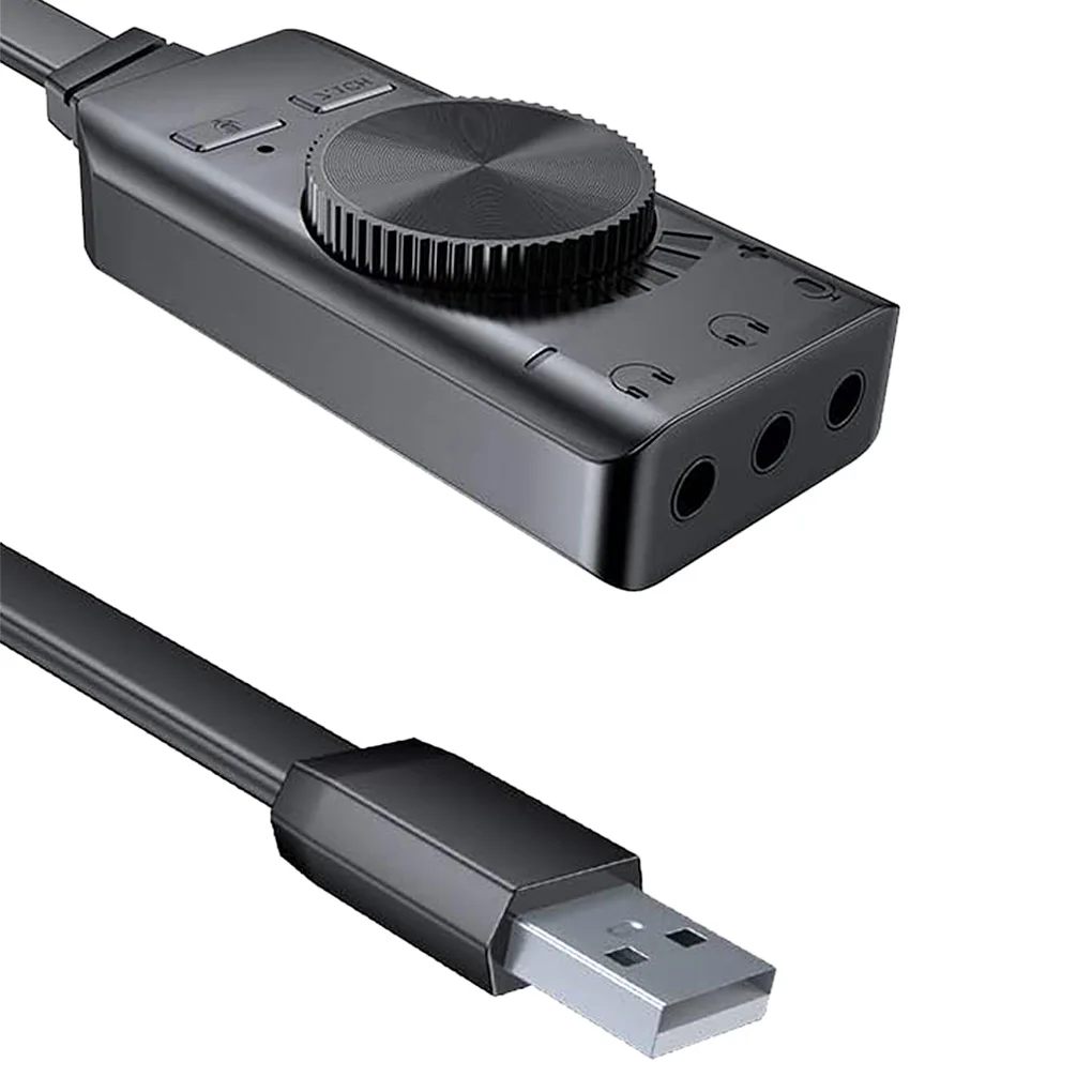 La tarjeta de sonido USB está diseñada con un ajustador de forma de rueda, que le permite mejorar el nivel de audio del juego.