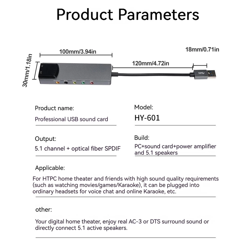 1. Admite múltiples formatos de audio:Esta tarjeta de sonido USB admite los formatos AES/EBU, IEC60958 y S/PDIF, lo que permite una salida real de 5,1 y 7,1 canales. Es compatible con varios dispositivos de audio, incluidos 5,1 altavoces, y ofrece una frecuencia de muestreo máxima de hasta 48KHz para una reproducción de audio de alta calidad.