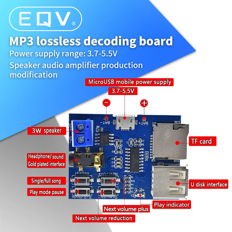 Tarjeta TF disco U formato MP3 placa decodificadora módulo amplificador decodificación reproductor de audio
