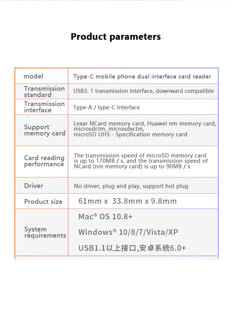 La tarjeta Uthai LRW350U lrw350u USB3.0 NCard TF dos en una interfaz dual t-ypec es adecuada para el lector de tarjetas Huawei nm