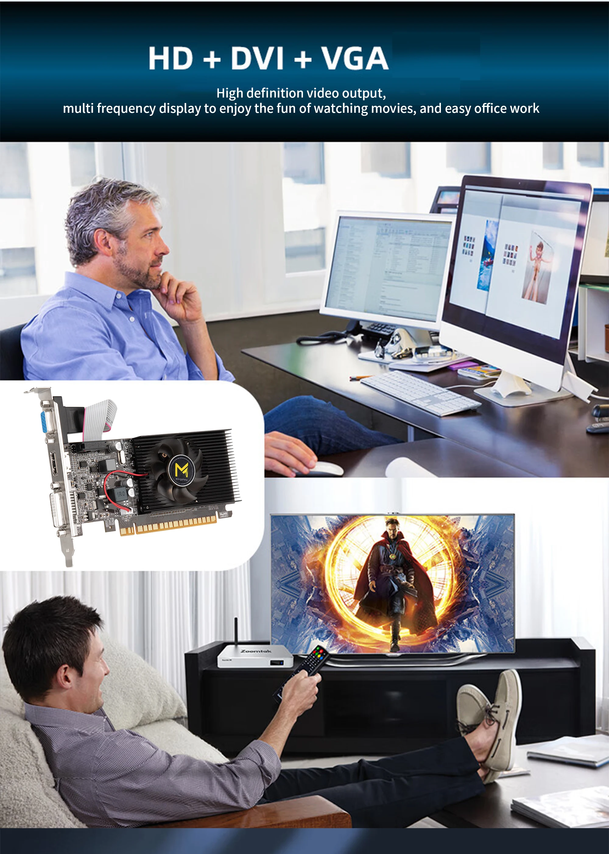 2. Interfaz de pantalla compatible con Tarjeta Gráfica: Interfaz HD + DVI + VGA, frecuencia central de 810MHz. Excelente mano de obra, placa base delgada.