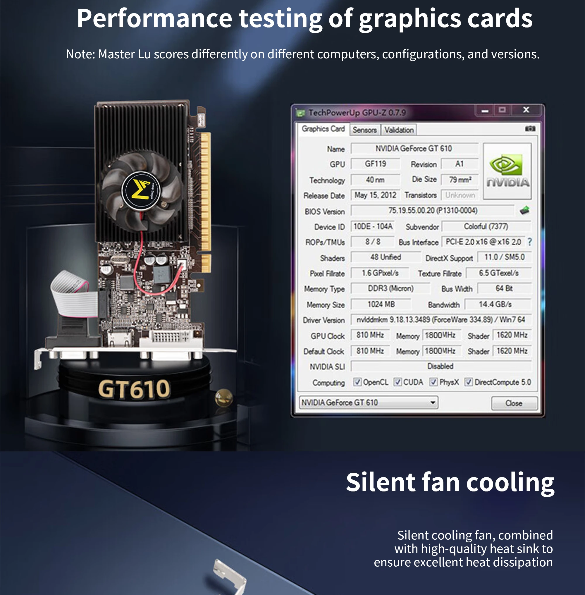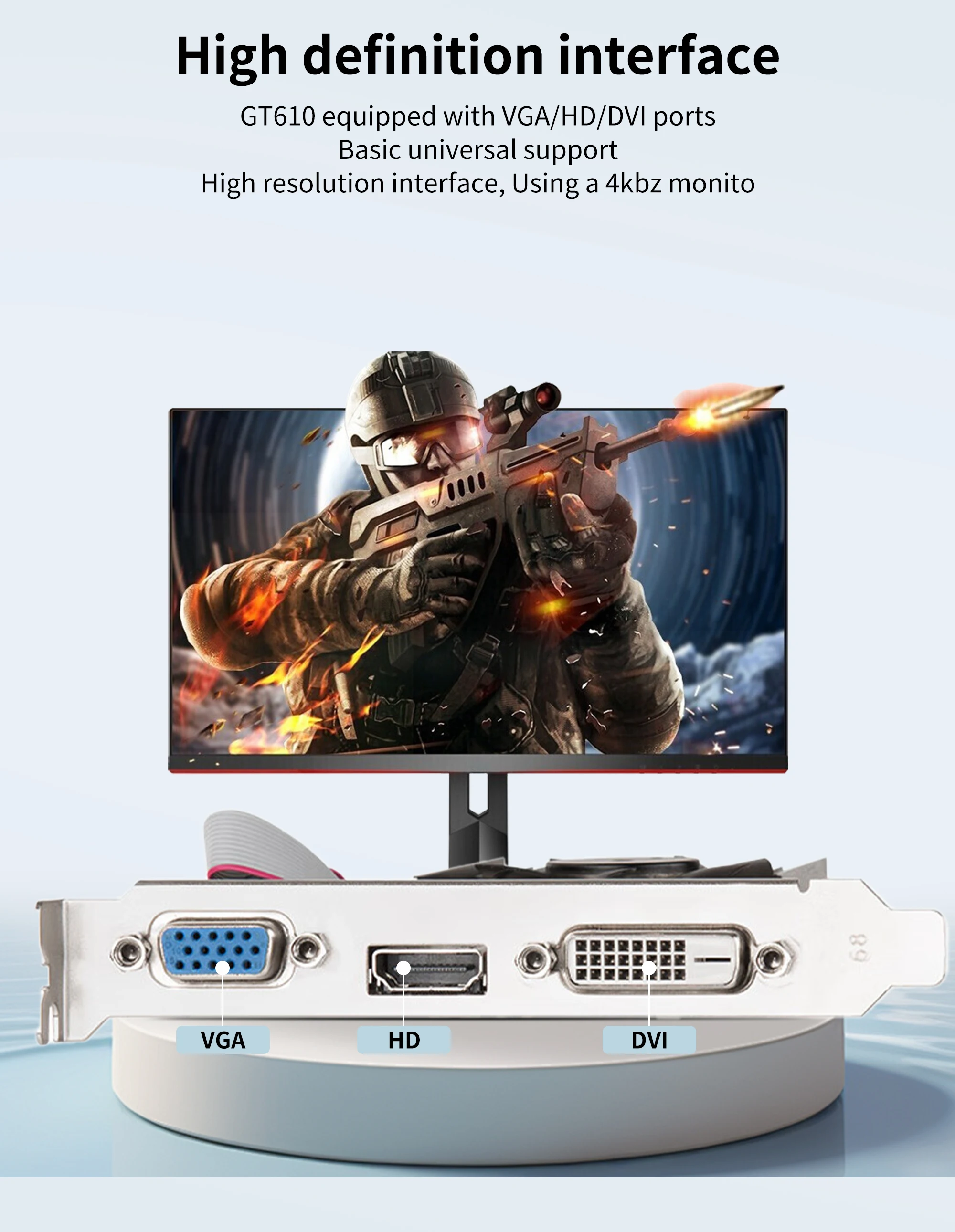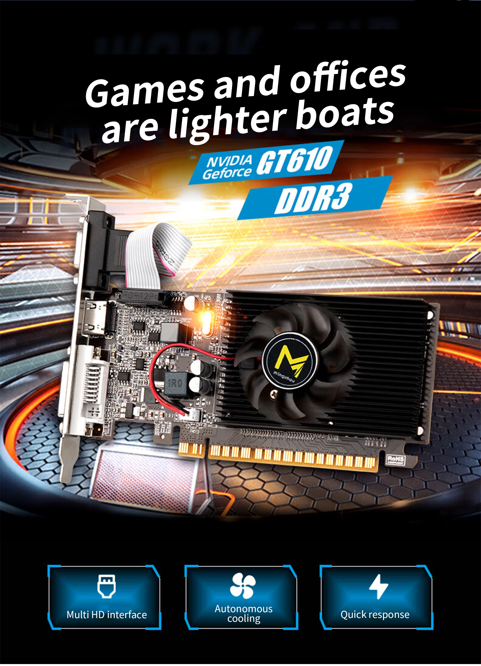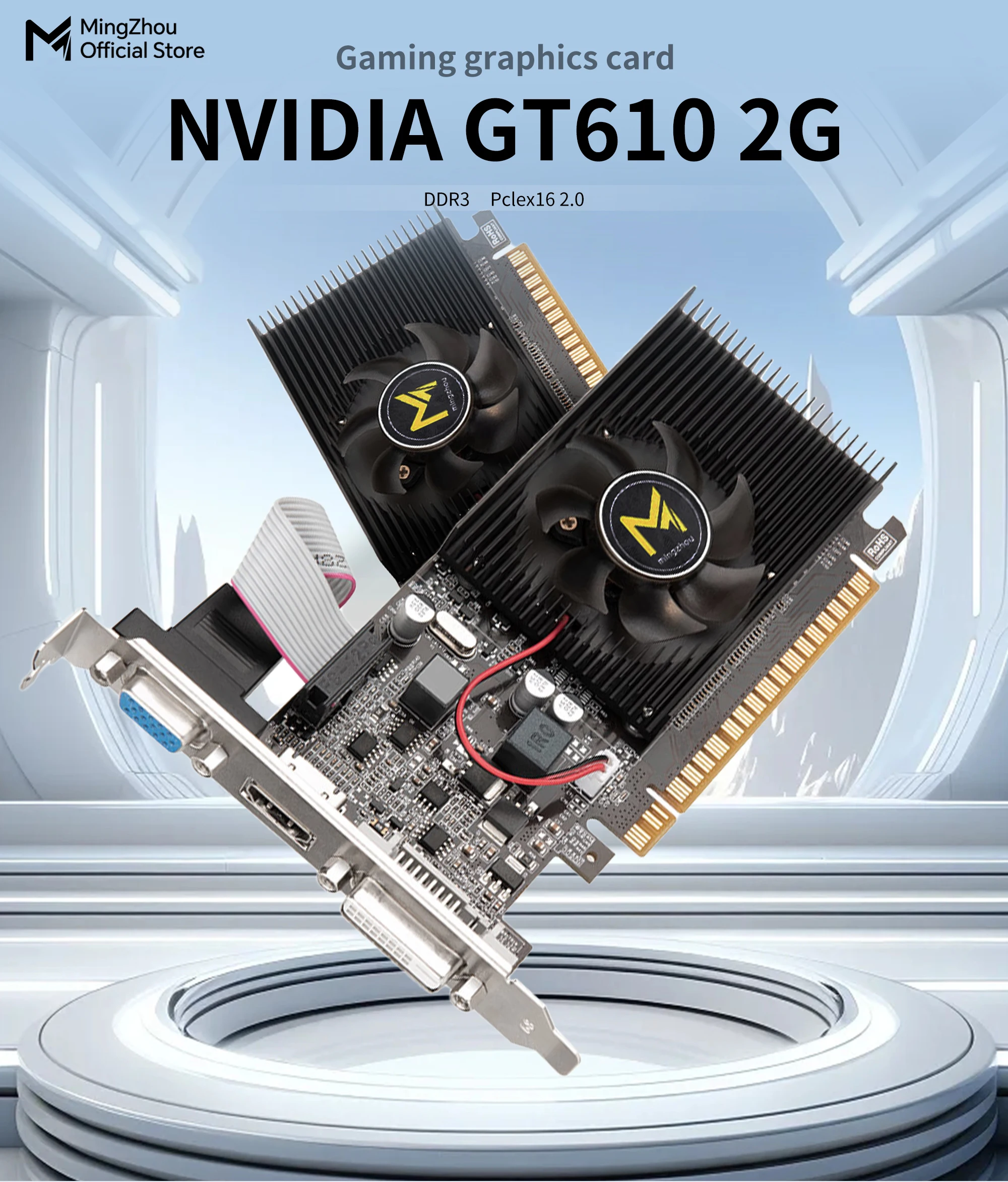 Comprar Tarjeta de vídeo para juegos MingZhou GeForce GT610 2GB DDR3 tarjeta gráfica de ordenador de 128 bits para NVIDIA Game PC GT 730 4GD3 HDMI DVI