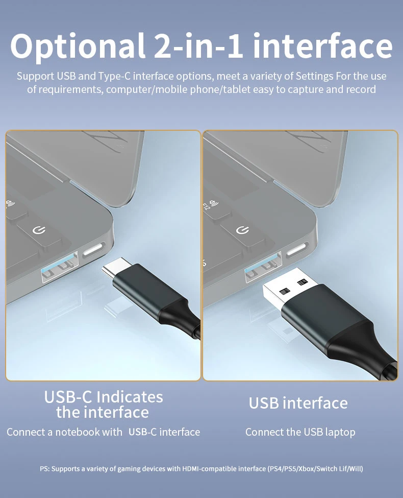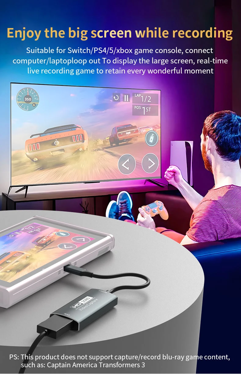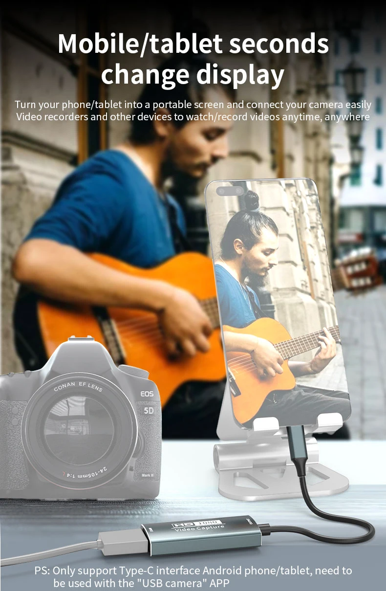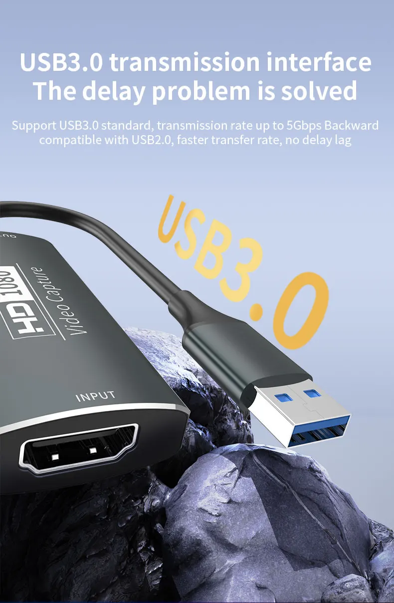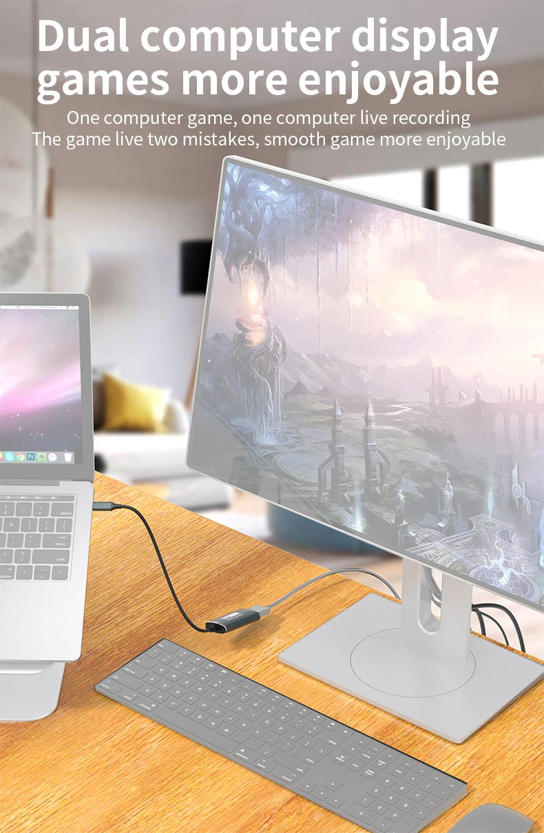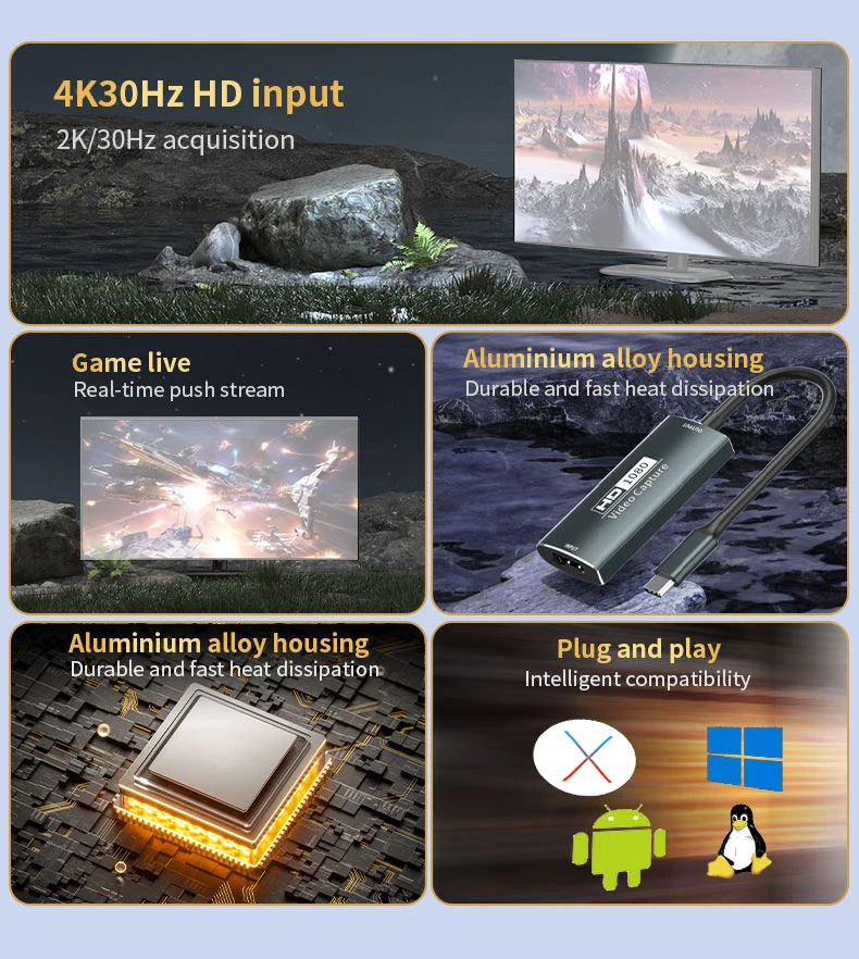Tarjeta de vídeo USB 3.0 4K 30Hz HDMI compatible con USB/tipo-c Grabber de juegos para PC Switch Grabación Xbox Transmisión en vivo