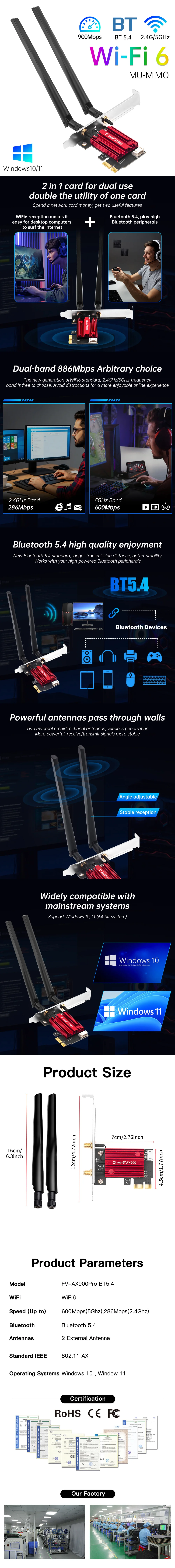 Comprar Tarjeta WiFi 6 PCIe FV-AX900 inalámbrica Bluetooth 5,4 de doble banda 2,4G/5,8 GHz tarjeta de red de alta velocidad para PC de escritorio Windows 10/11
