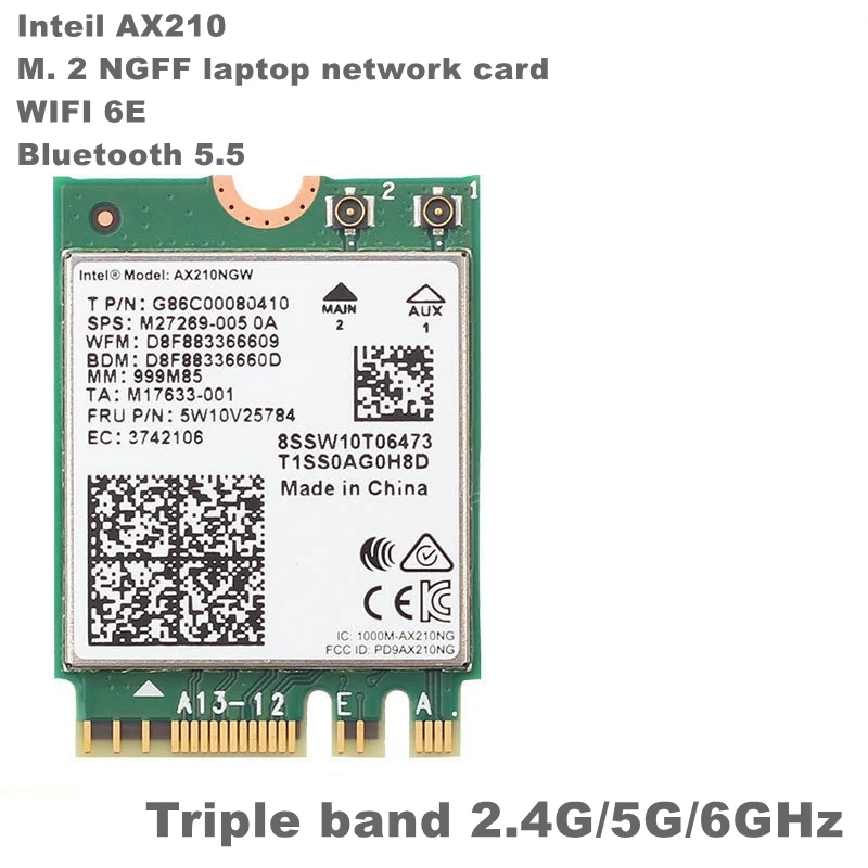 Tarjeta WiFi AX210NGW, módulo inalámbrico Intel AX210 de 6GHz, adaptador de red interna de tres bandas, Bluetooth 5,3, para ordenador portátil M.2/NGFF