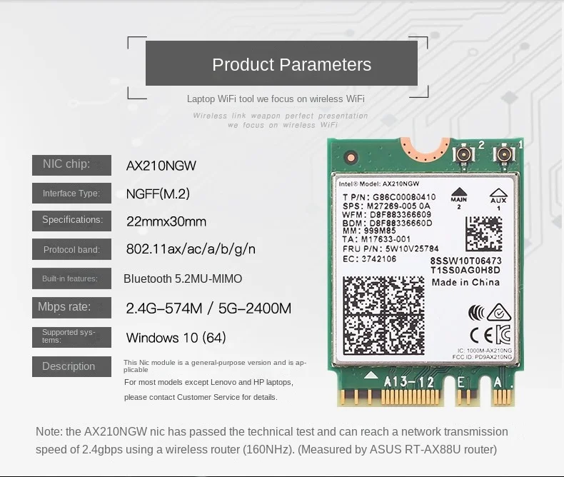Comprar Tarjeta WiFi AX210NGW, módulo inalámbrico Intel AX210 de 6GHz, adaptador de red interna de tres bandas, Bluetooth 5,3, para ordenador portátil M.2/NGFF