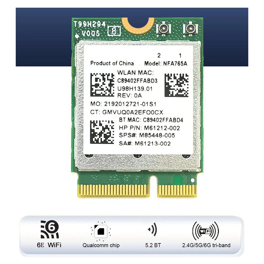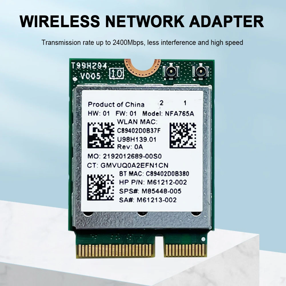 NFA765 tarjeta WiFi Mudule 2400Mbps velocidad rápida 2,4G/5G/6G módulo inalámbrico tarjeta adaptadora compatible con Bluetooth 5,3 compatible con Win10 Win11